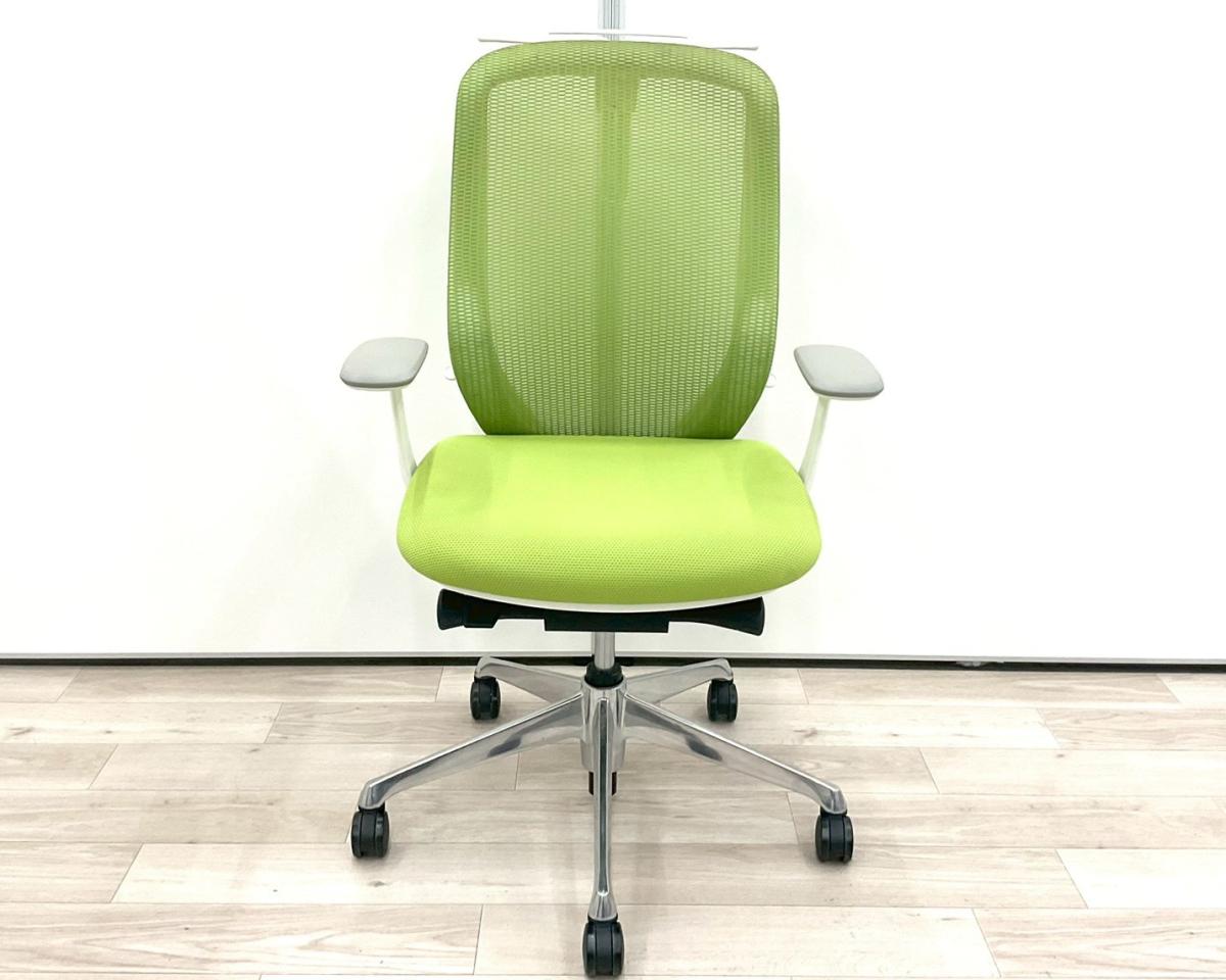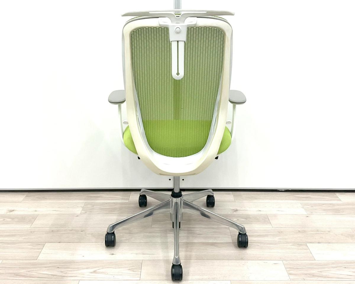 【前傾チルト機能付き!オカムラ製品で最も人気を集める高機能メッシュチェア!】■オカムラ(okamura)製 シルフィ(Sylphy)チェア ハイバック 肘付き ■可動肘 ■ライムグリーン × ホワイトシェル【状態良好品!】