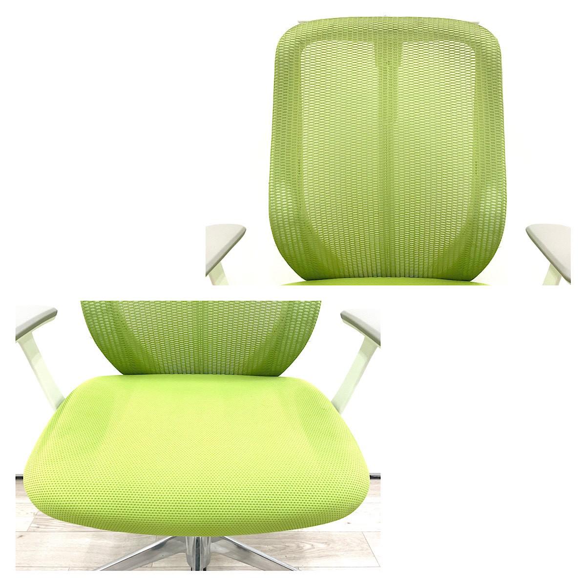 【前傾チルト機能付き】【オカムラ製品で最も人気を集める高機能メッシュチェア!】■オカムラ(okamura)製 シルフィ(Sylphy)チェア 肘付き ハイバック 背面メッシュ ■固定肘・ハンガー付き ※フレーム日焼け有 ■ライムグリーン×ホワイトシェル【弊社使用欄:A01039003 K】【KN】サーキュラーバリューCO2削減量の算出について