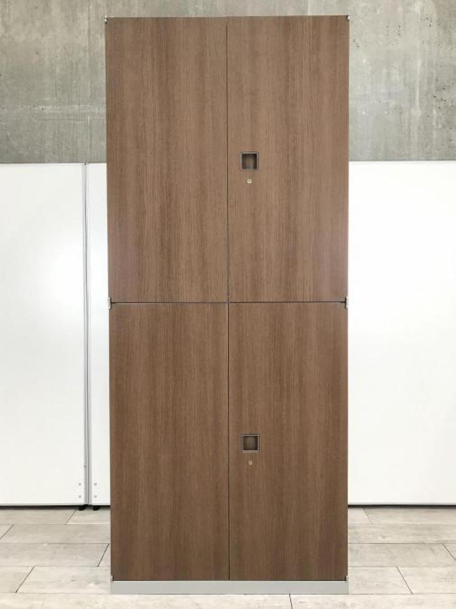 【役員室にもピッタリ 重厚感がいい味を醸し出す】正面:木目ブラウン/側面:シルバー/オカムラ(okamura)/レクトライン/上下両開き書庫セット- 錦糸町サテライト