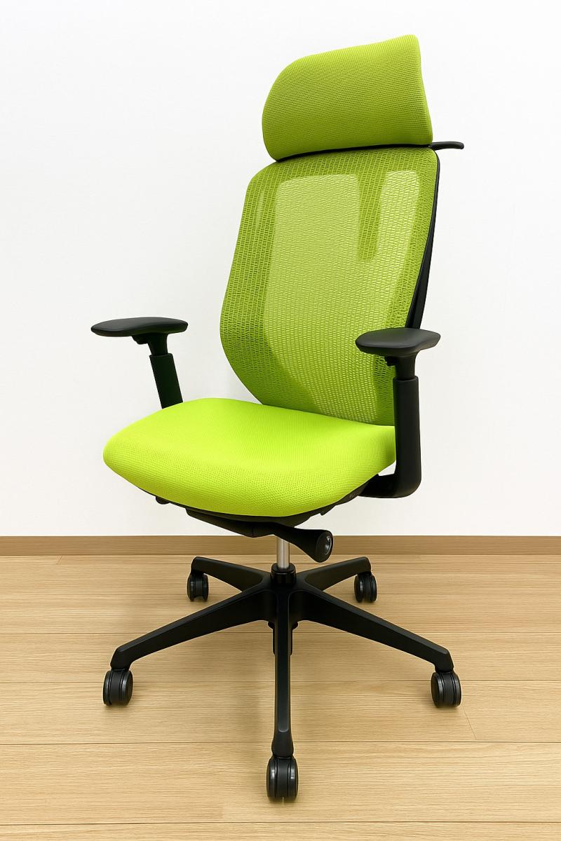 【前傾チルト機能付き!オカムラ製品で最も人気を集める高機能メッシュチェア!】■オカムラ(okamura)製 シルフィ(Sylphy)チェア ハイバック 肘付き ■可動肘 ■ヘッドレスト付き ■ライムグリーン × ホワイトシェル ※実際の商品はヘッドレスト部分のみブラックカラーとなります。