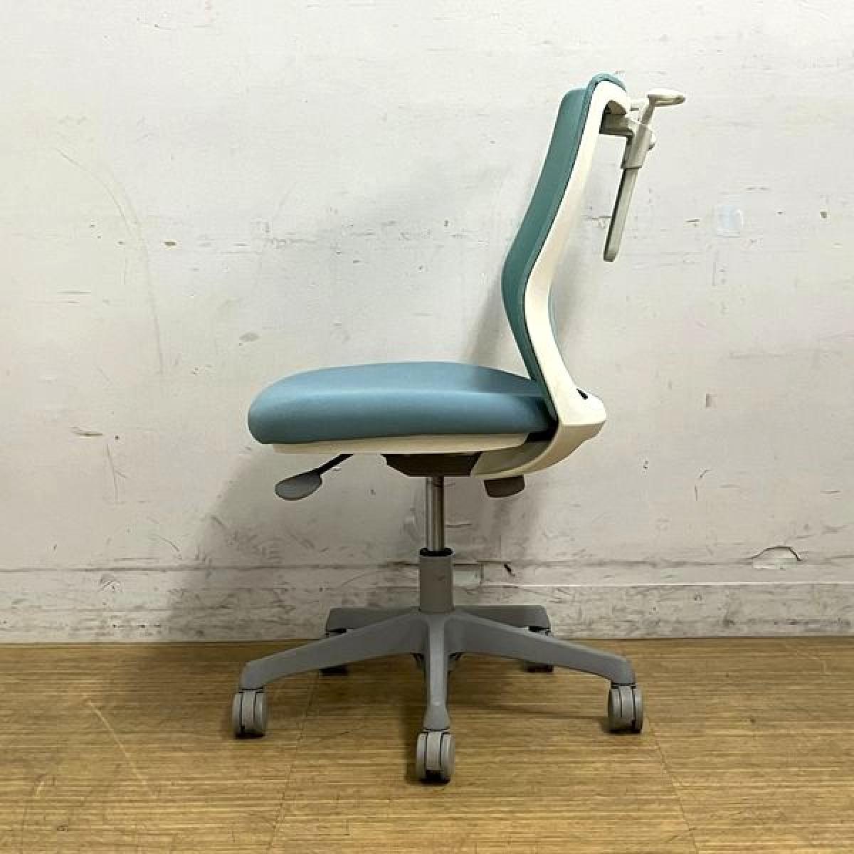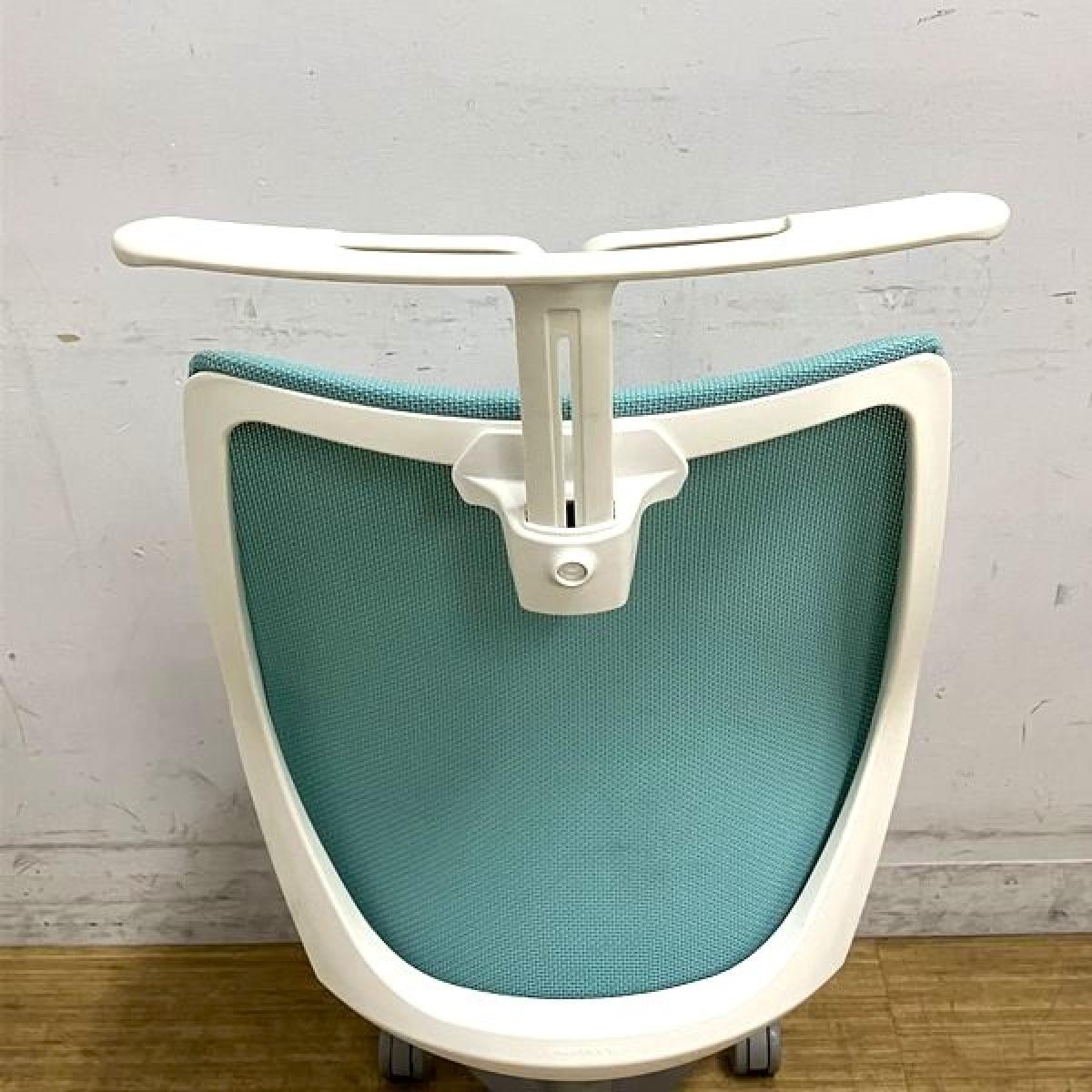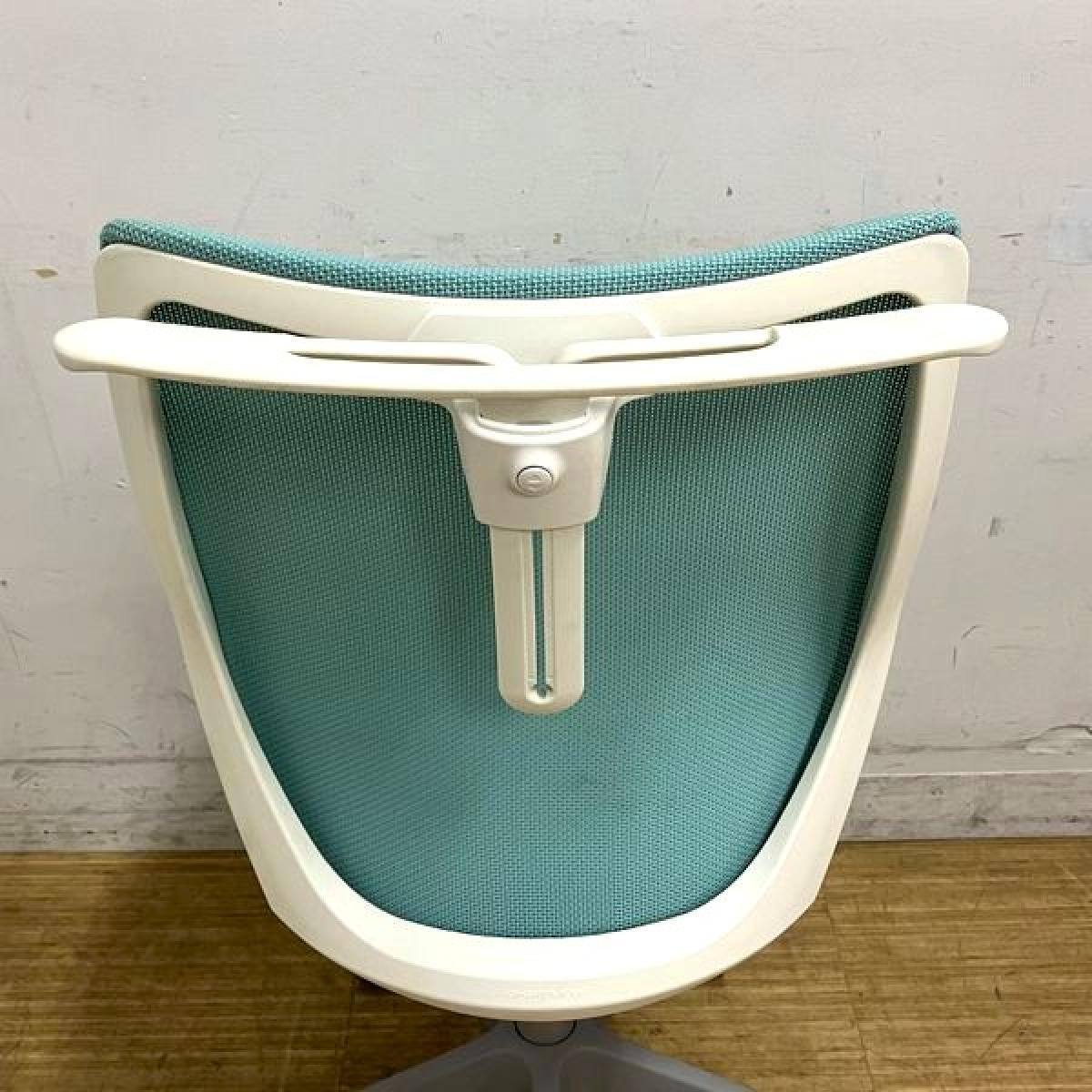 【在庫入替セール】オカムラ CG-M 肘無しチェア 背面:メッシュ セージ×ホワイトフレーム コートハンガー付き- 名古屋千種店