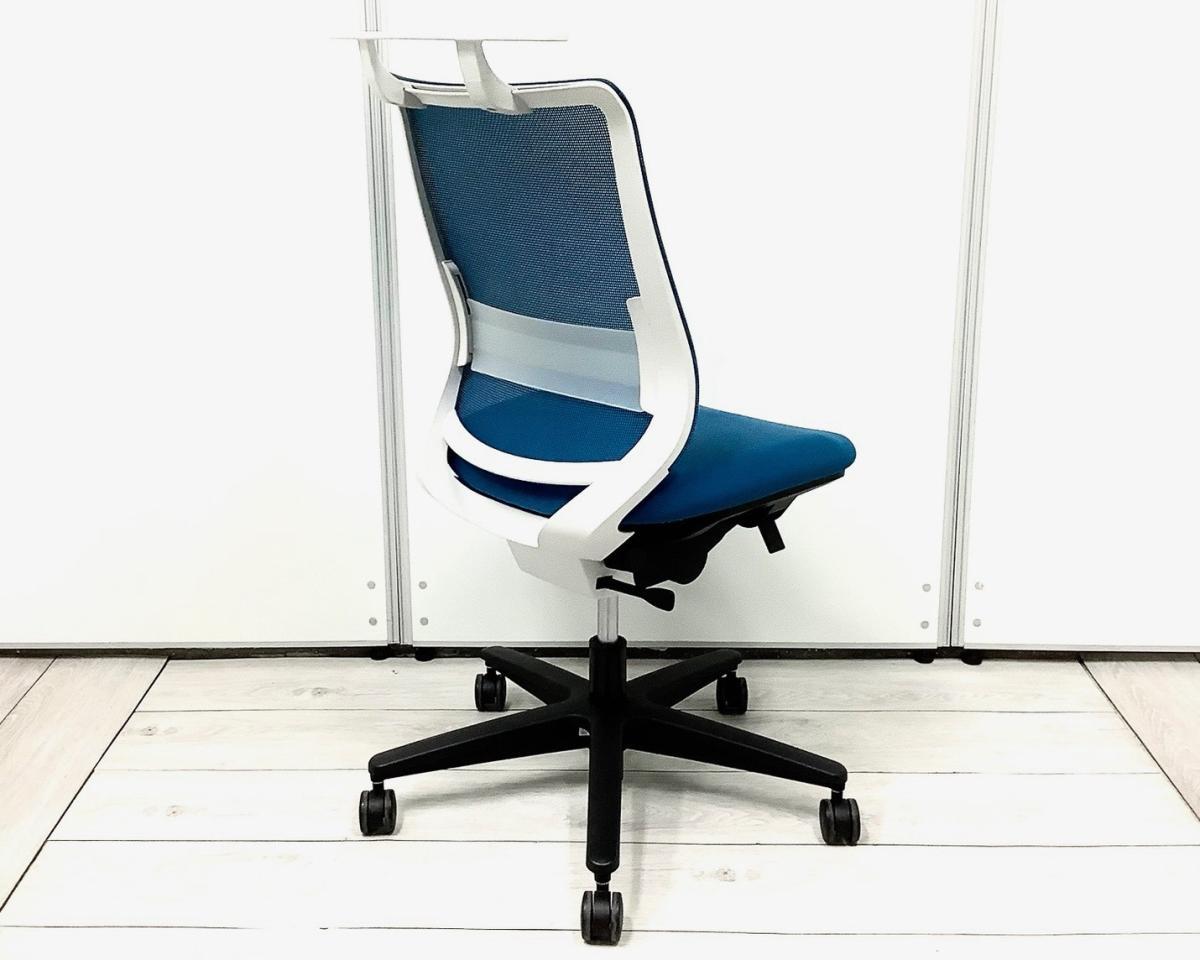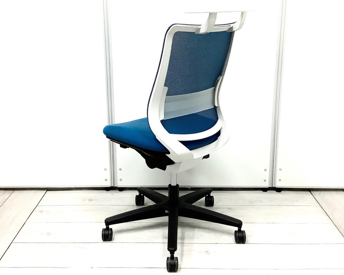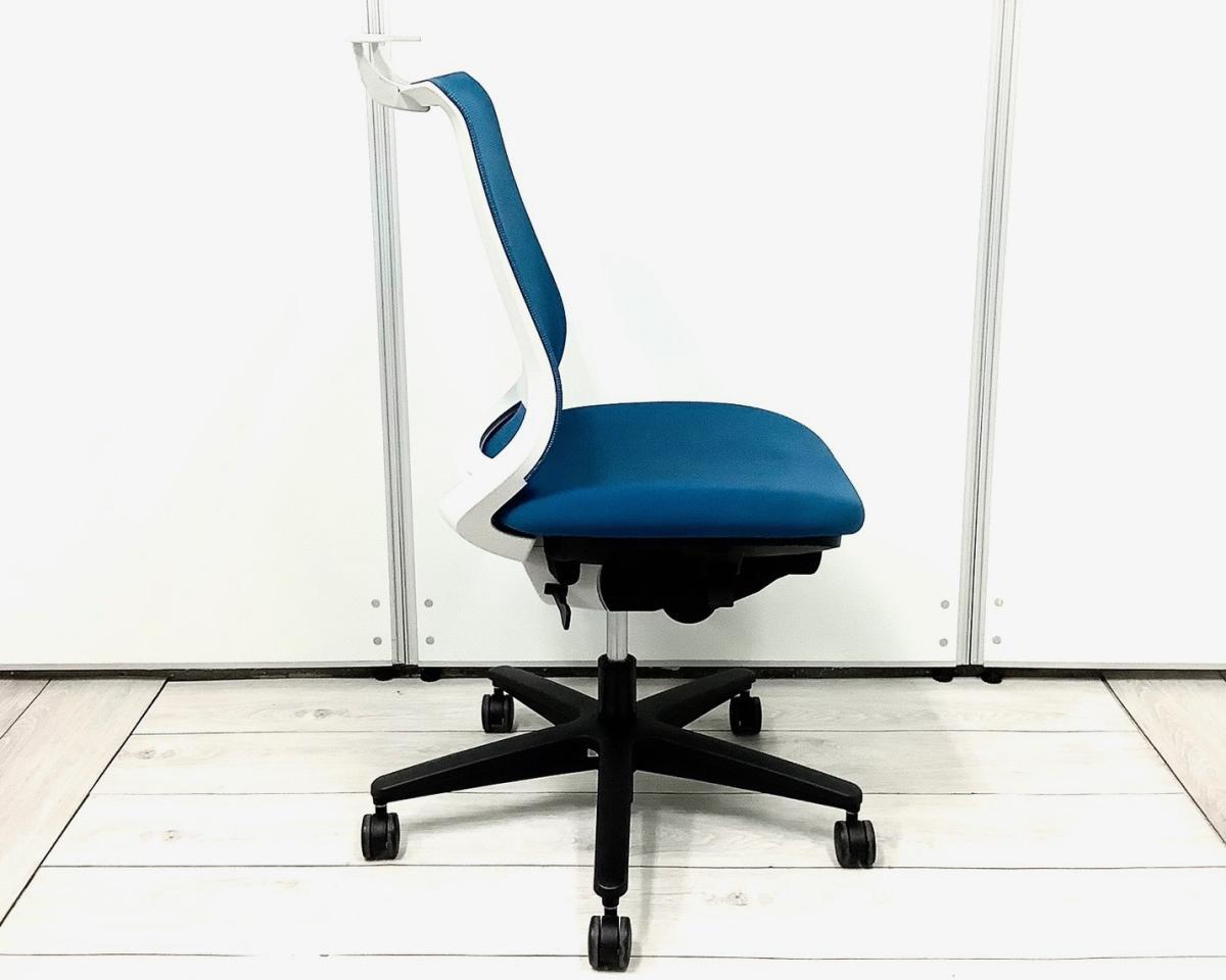 ★【商品入替のため、残り1脚限り】コクヨ製 ミトラシリーズ ターコイズブルー×ホワイトフレーム メッシュ背面 ランバーサポート付 快適な座り心地と充実機能 肘無しローバックチェア!!