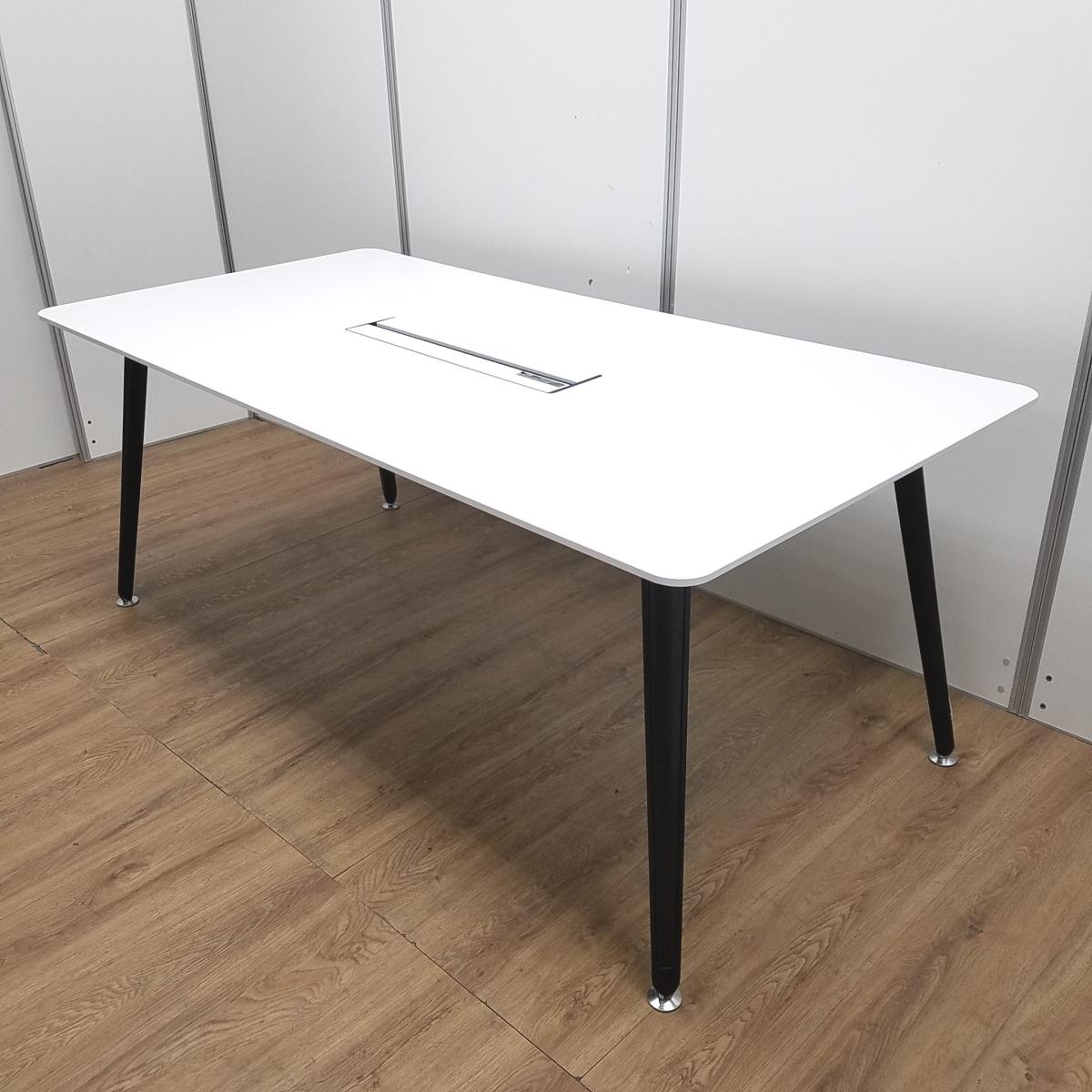 オカムラ製 プリシード(PRECEDE)ル ホワイト 4本脚ブラック W1800xD900xH720サイズ 配線ダクト 会議用 4名~6名様用に オカムラ製最高級シリーズのプリシードのテーブルが入荷! オシャレなホワイトモデル! ミーティングテーブル!!- 京都東寺店