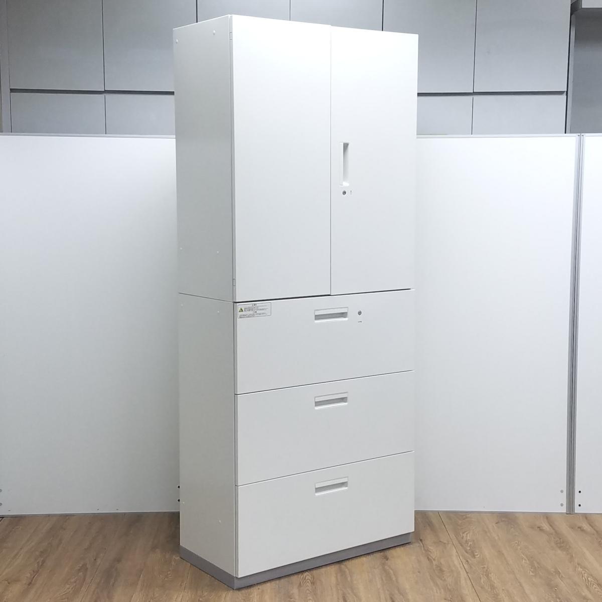 ★【T12】【商品入替のため、残り2台限り】プラス製 L6 ホワイト W900×D450×H2150 両開き+3段ラテラル シリンダー錠 オフィスの書類をスッキリ整理! 両開きと引き出し式の人気の組み合わせ! ハイキャビネット 上下書庫セット!!在庫がある店舗一覧