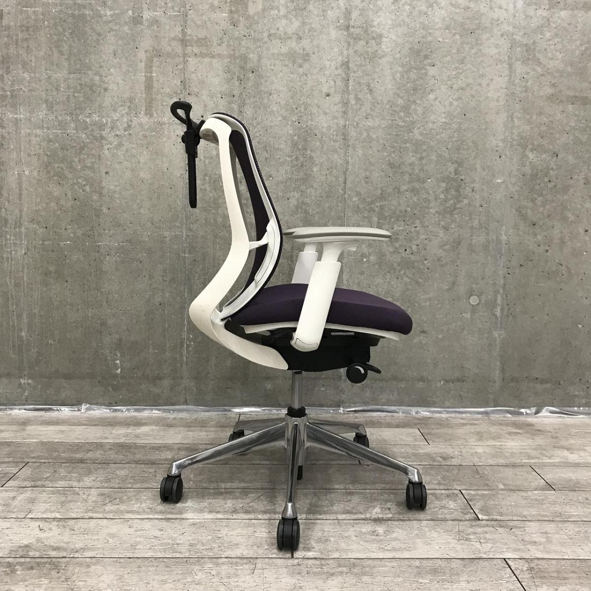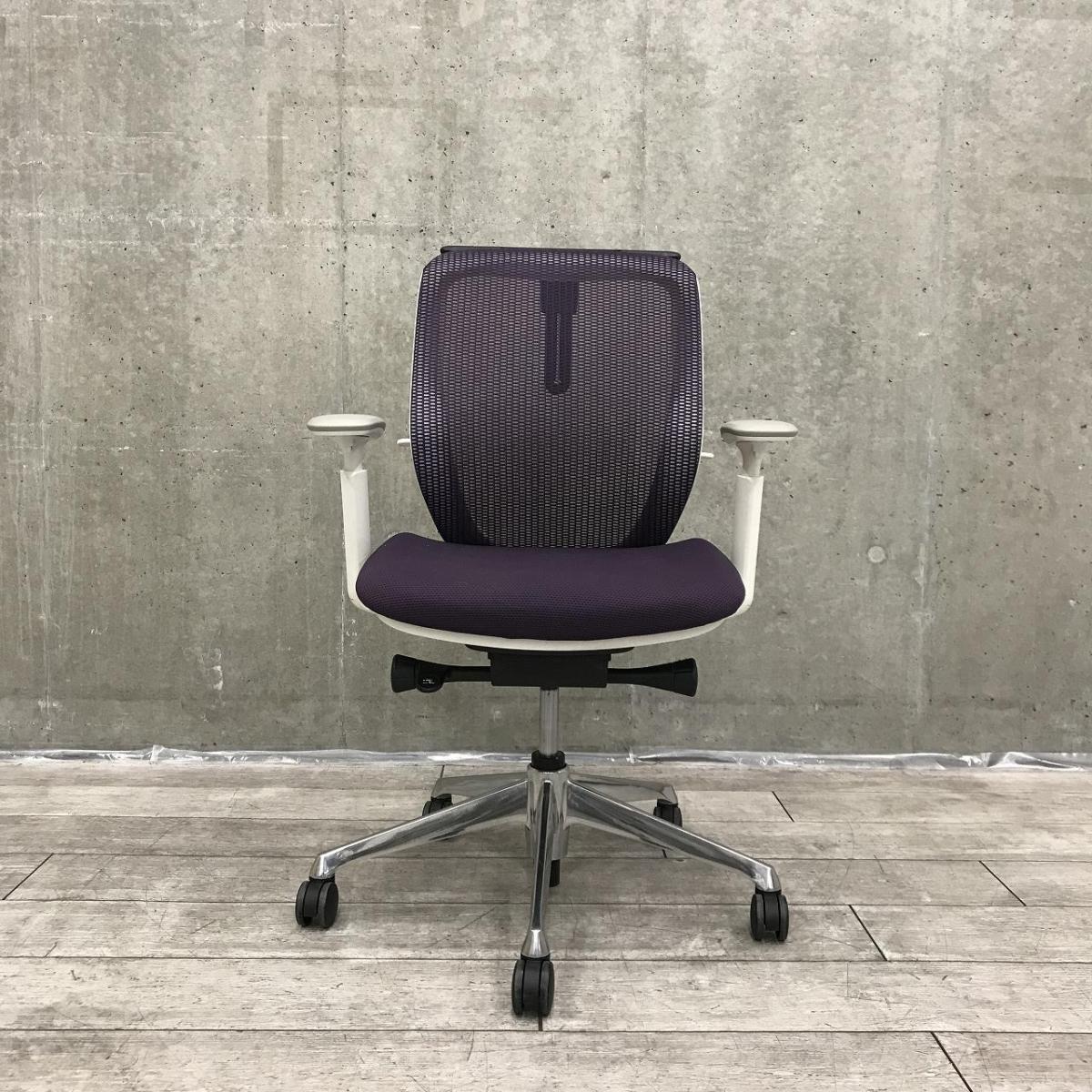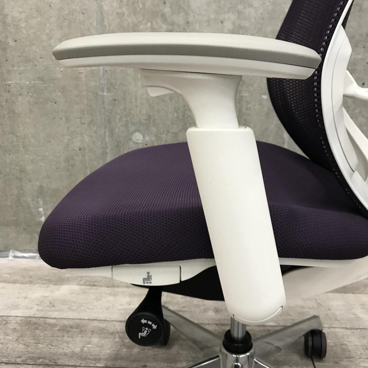 【前傾チルト機能付き】【オカムラ製品で最も人気を集める高機能メッシュチェア!】■オカムラ(okamura)製 シルフィ(Sylphy)チェア 肘付き ローバック 背面メッシュ ■可動肘・ハンガー(ブラック)付 ■パープル×ホワイトシェル【ABW商材】【関東倉庫在庫品】【弊社使用欄:A01044074】サーキュラーバリューCO2削減量の算出について