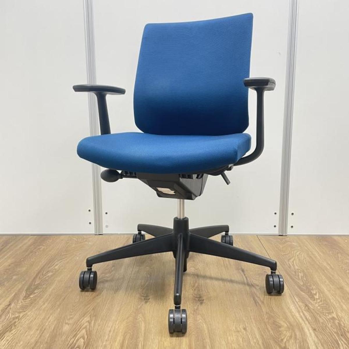 ■コクヨ(KOKUYO)製 ■ウィザード2(wizard2)チェア ■プルシアンブルー×ホワイトシェル ×ブラック脚 ■肘付ローバック ■固定肘・ランバーサポート付き 【弊社使用欄:A01048229 K】