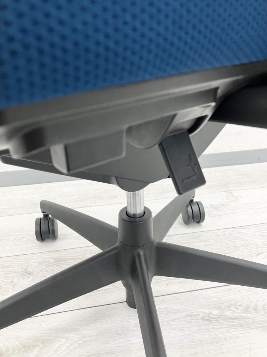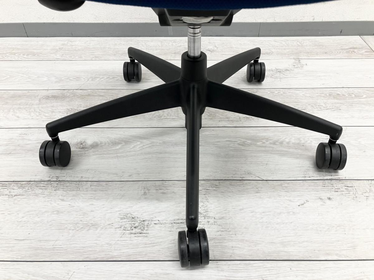 コクヨの人気シリーズ「ウィザード2」のハイバックモデルです。人間工学に基づいた背もたれ形状が、背中から腰にかけてしっかりフィットし、長時間のデスクワークを快適にサポートします。落ち着いたプリシアンブルーの張地がオフィス空間に爽やかな印象を与えます。