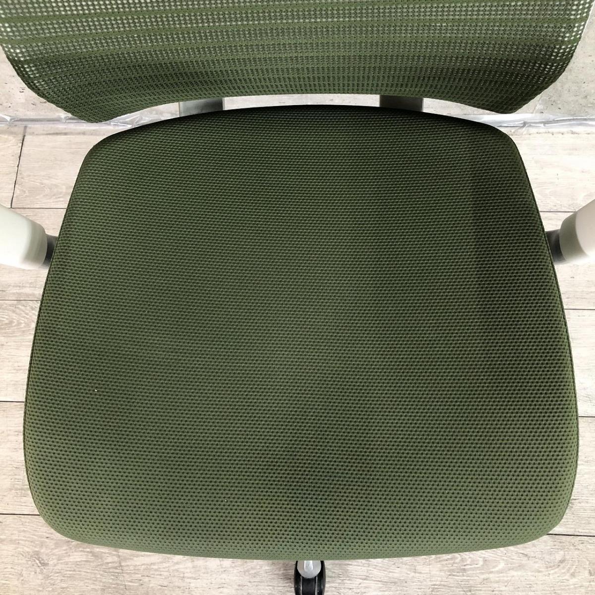 【ヘッドレスト付きならコレ!厚めのクッションで快適な座り心地を実現!】■オカムラ(okamura)製 コーラル(choral)チェア ■エクストラハイバック ■ヘッドレスト付き ■背メッシュ ■グリーン ■デザインアーム〈岐阜・愛知・三重・静岡・福井〉