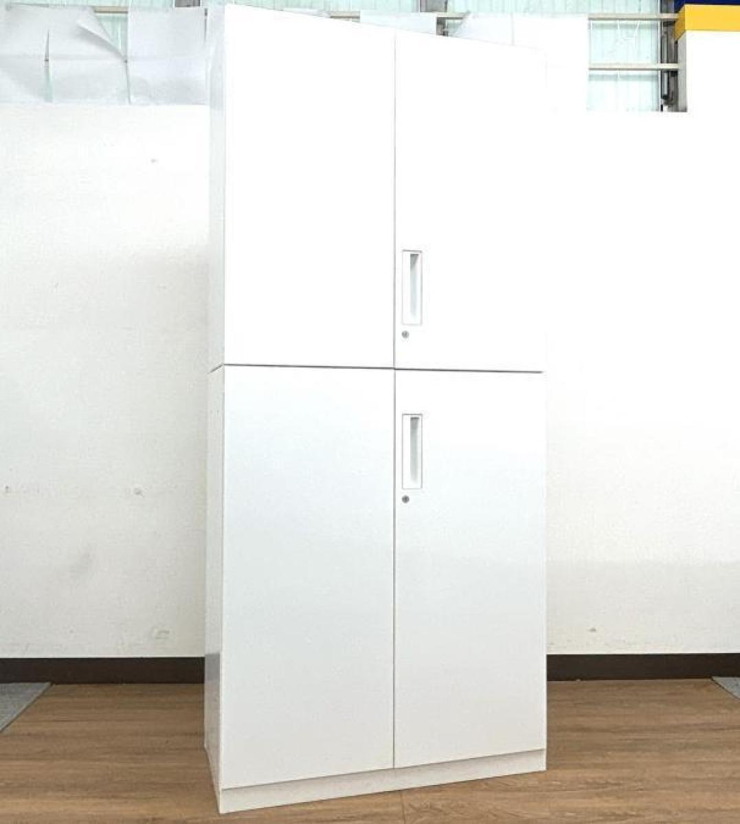 【特殊サイズ!!】【スッキリとしたフラットなデザイン!】【観音開きですべての書類を見渡せ、必要な書類がラクに取り出せる!人気の書庫セット!】■コクヨ(KOKUYO)製 エディア(EDIA)シリーズ 上下両開き書庫セット ハイキャビネット ■ホワイト ■シリンダー錠 ■高さ2050㎜
