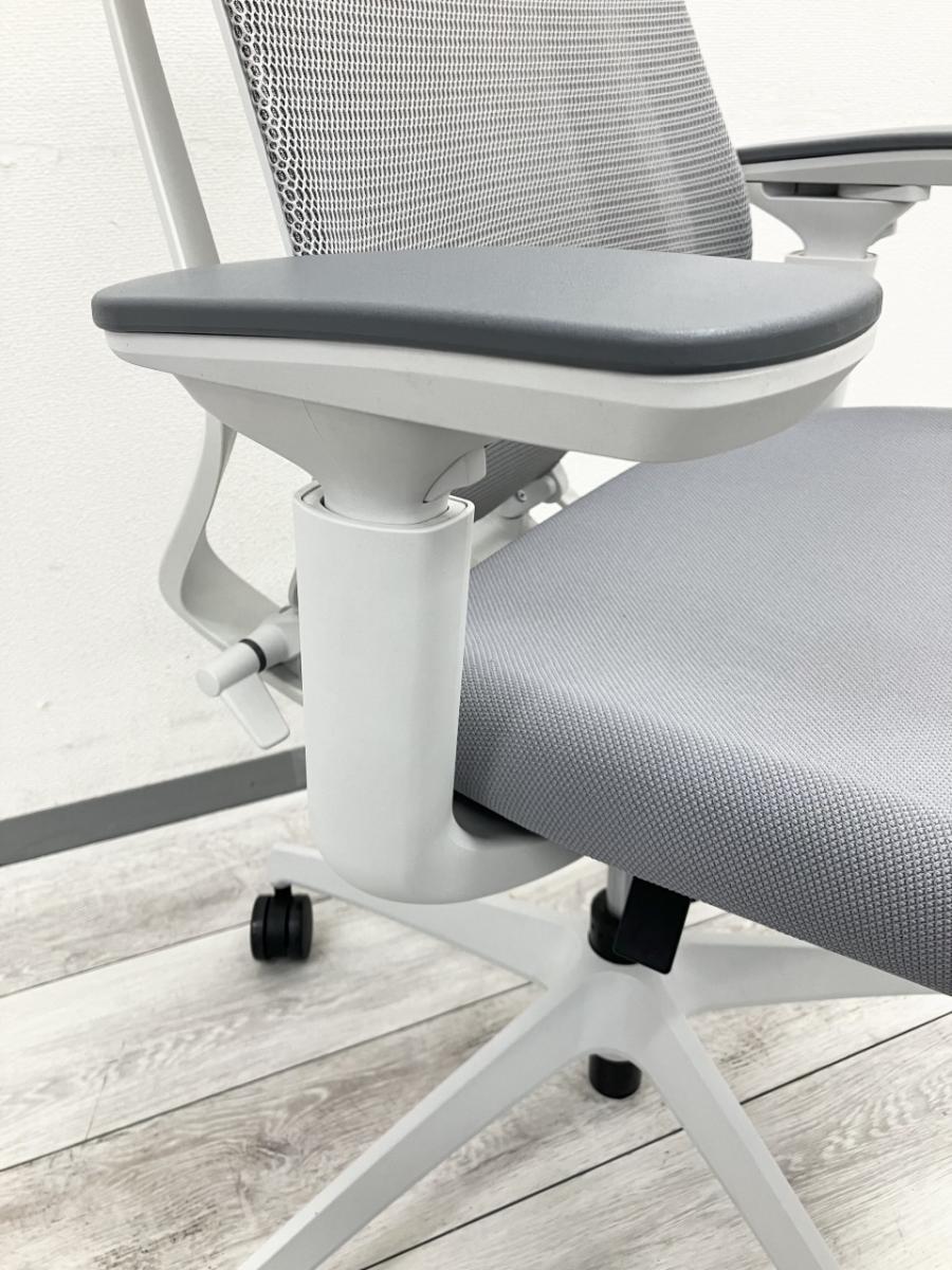 ★コクヨ製 デュオラ ホワイトグレー ホワイトグレーフレーム 肘付き ハイバック 背面メッシュ 樹脂脚 アジャスタブル※可動肘 二重フレーム構造がもたらすしなやかで美しい背もたれ機能! 簡易操作で自分に合った姿勢をサポート! 肘付きハイバックチェア!!
