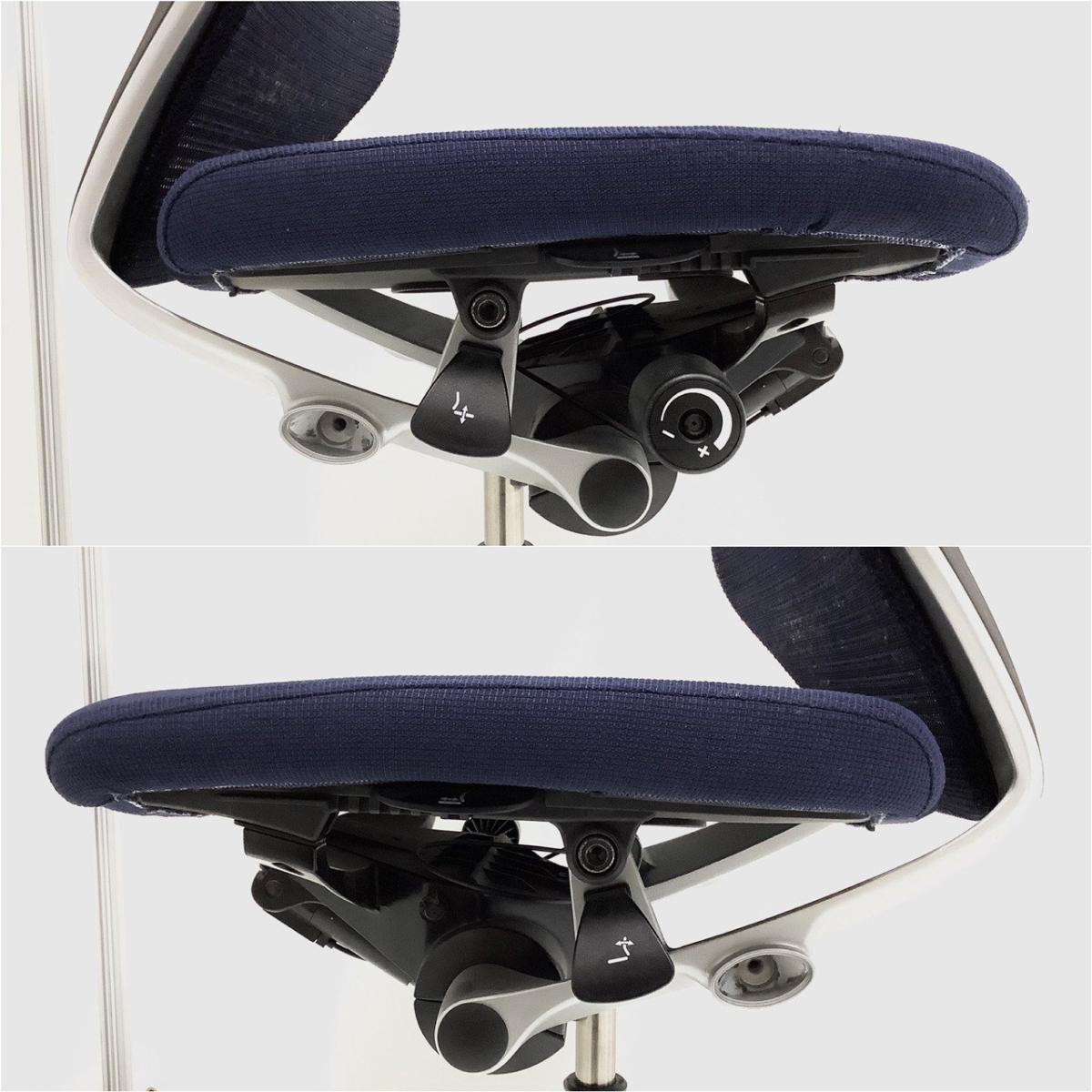 もちろん座り心地もコンテッサの直系ですから快適です。座面の素材はクッションとメッシュの2タイプあります。私、個人的には座面の中心部分でも外側でもテンションが変わらないクッション素材が、足を閉じても開いても快適なので推しです!"