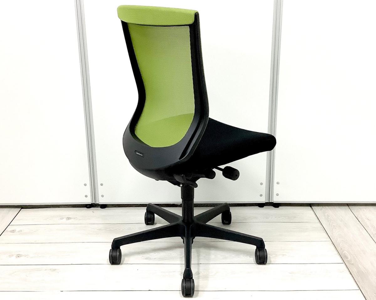 【長時間のデスクワークを快適にサポート!】 ■オカムラ エスクードメッシュチェア 背:グリーン 座:ブラック ■ワンランク上スタンダードモデル!【OKAMURA ESCUDO】