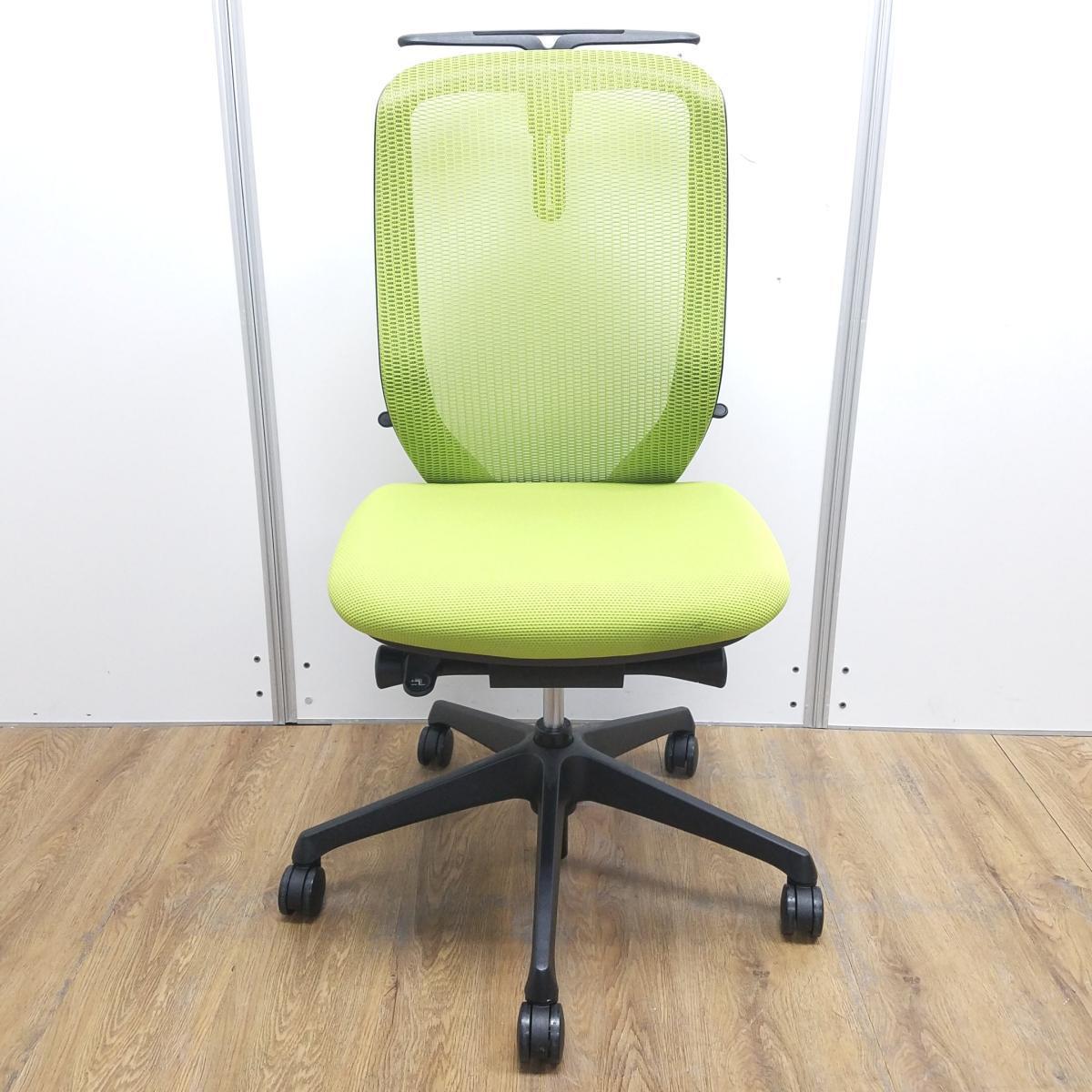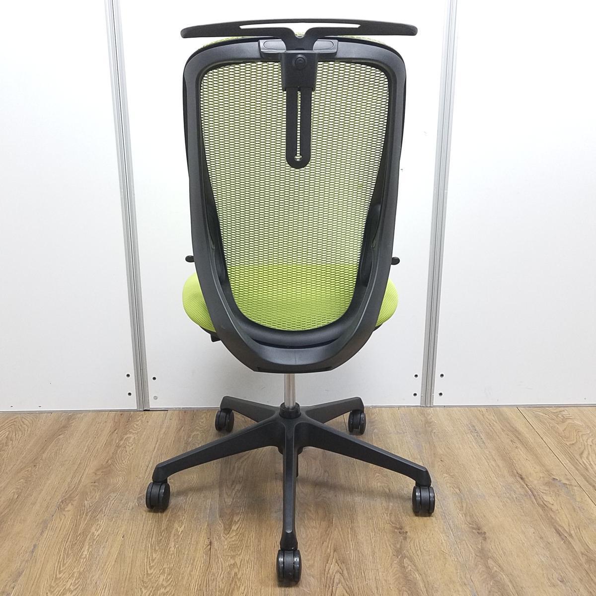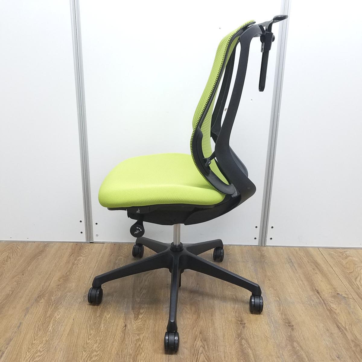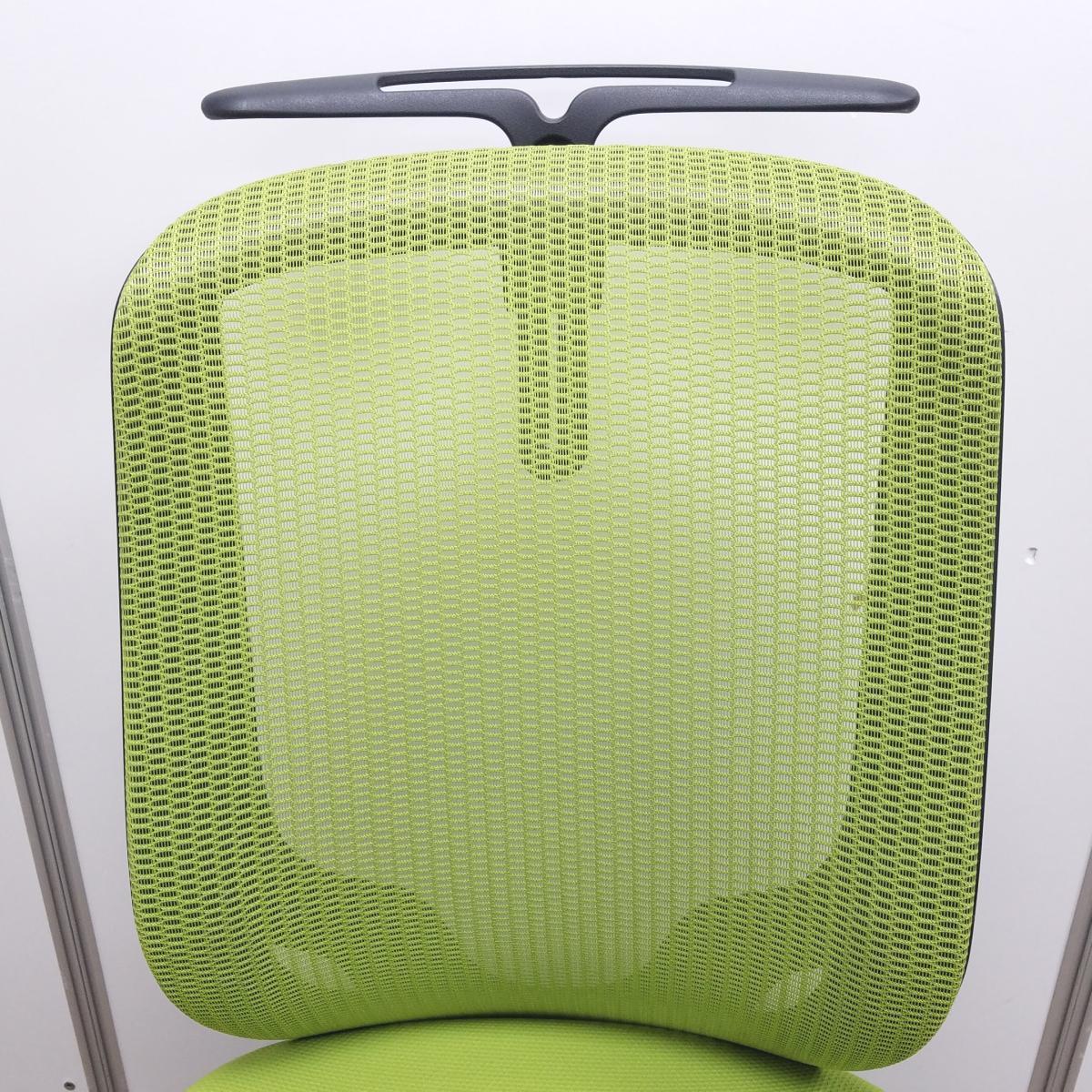オカムラ製 シルフィ ライムグリーン ブラックフレーム 背面メッシュ ハイバック ハンガー付 樹脂脚 前傾チルト機能付き! オカムラ製品で最も人気を集める高機能メッシュチェア! 肘無しハイバックチェア!!