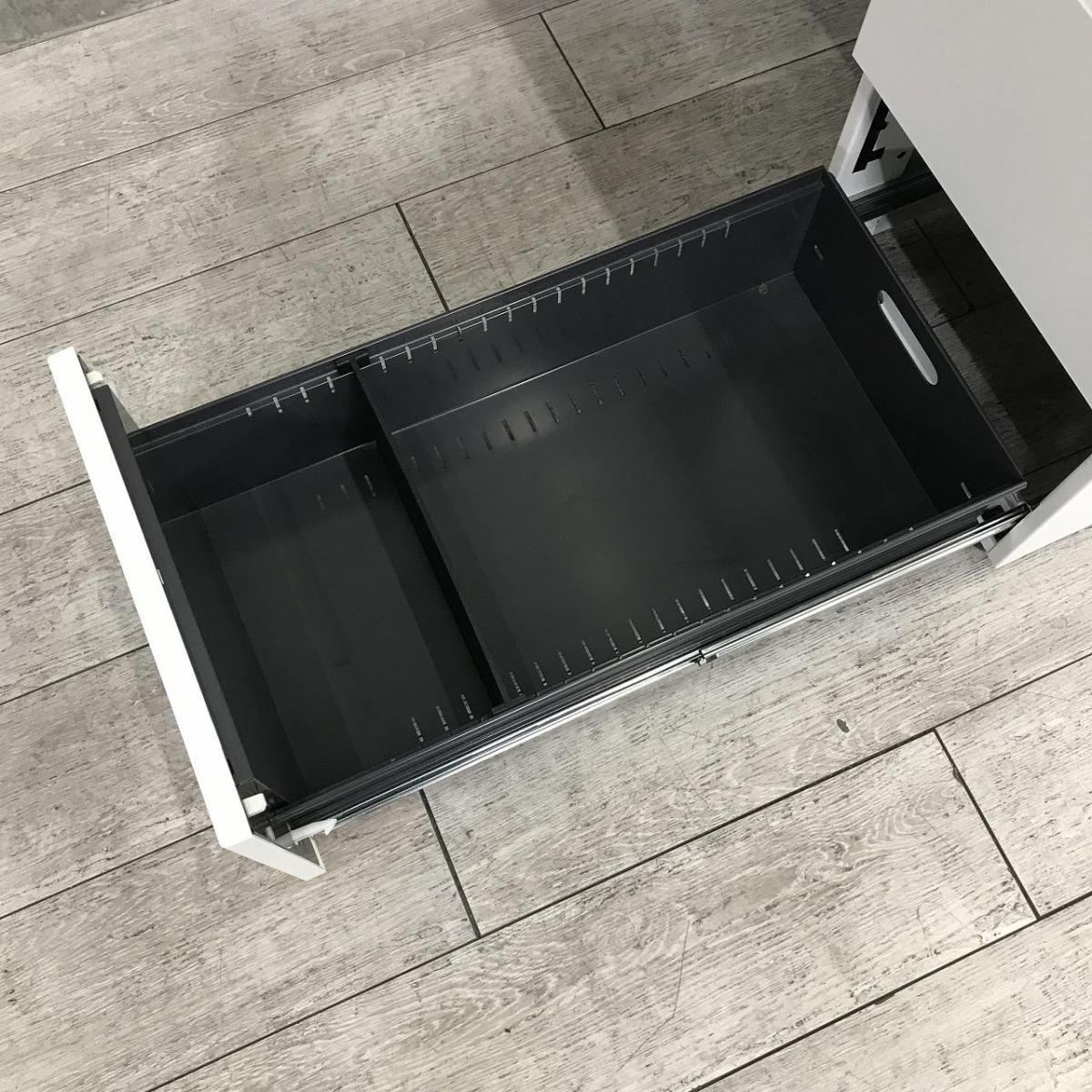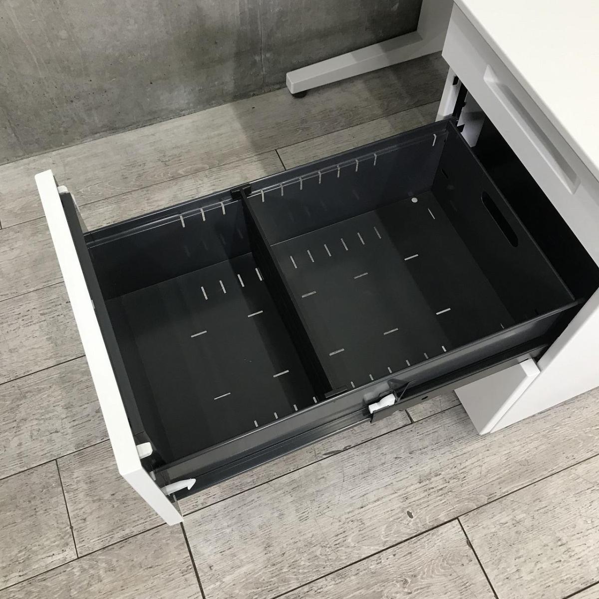 デスクサイドには3段の収納付きで、収納面もばっちりです。