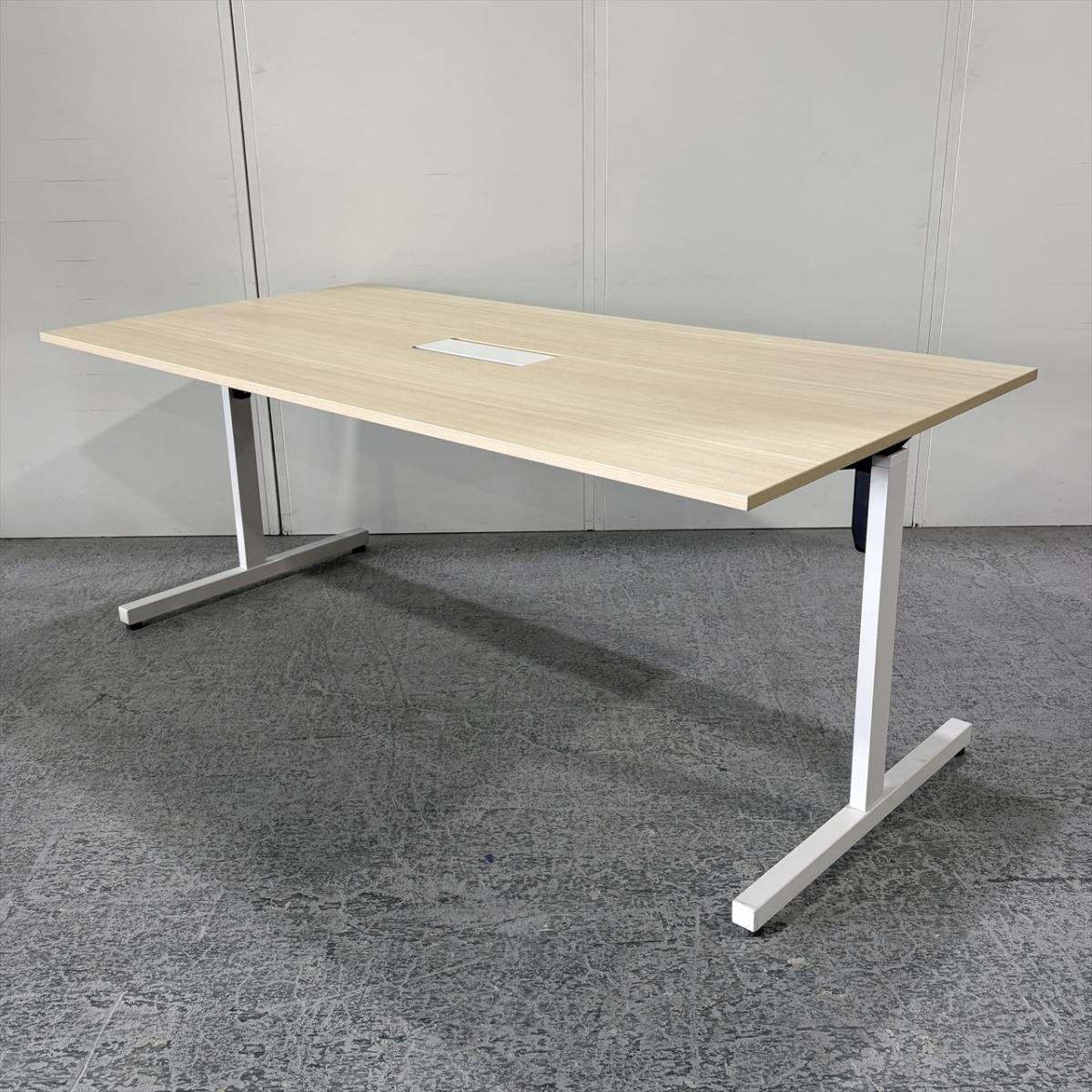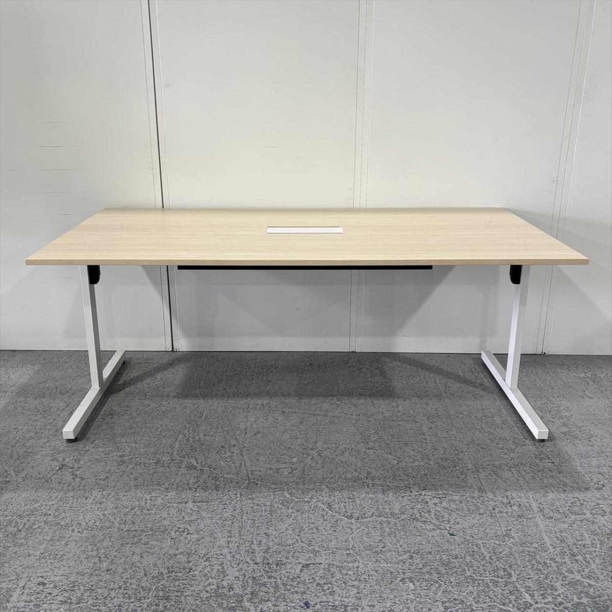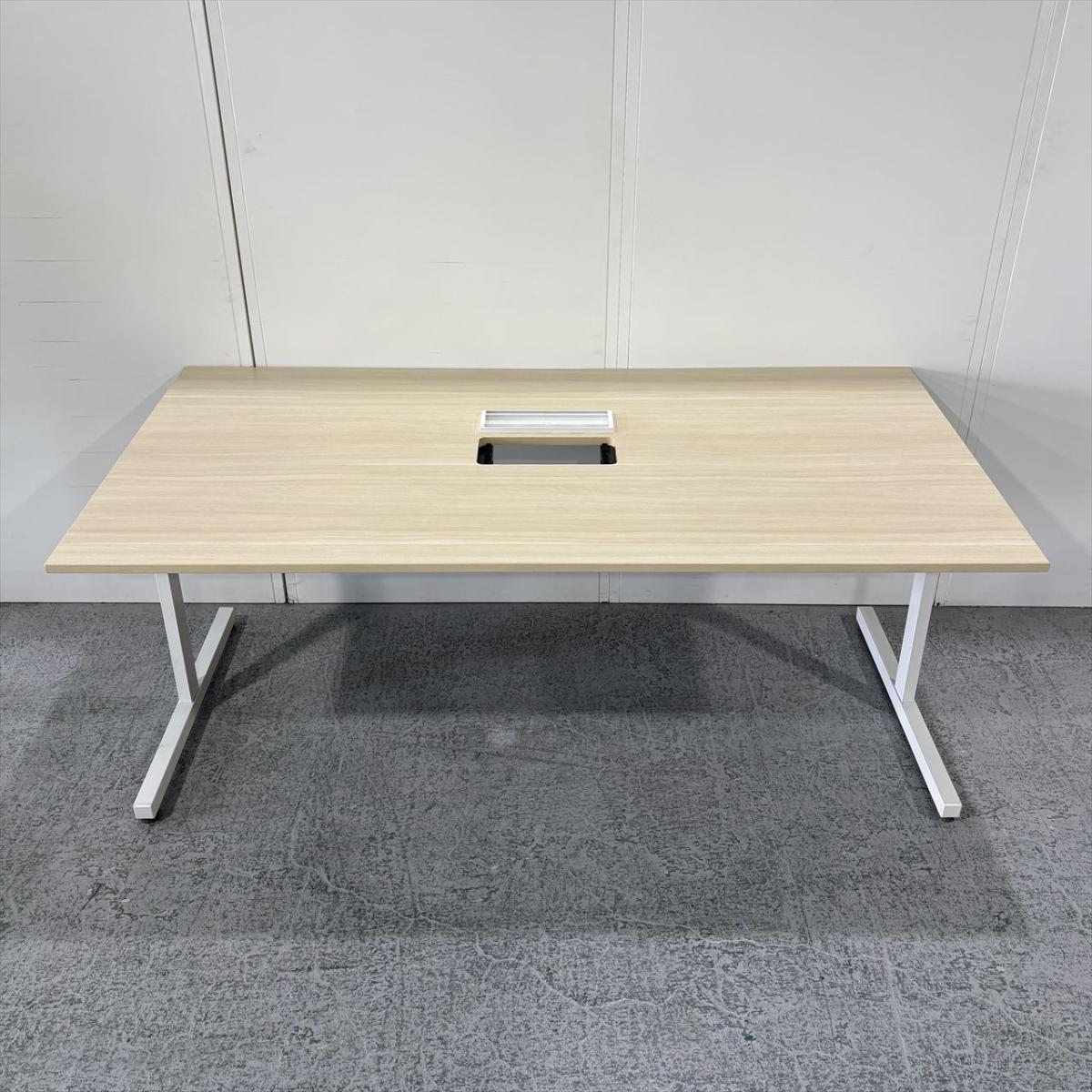 【4~6名様の打ち合わせ・会議にオススメ!】■ウチダ(UCHIDA)製 ミーティングテーブル W1800/D900/H720㎜ ■天板ナチュラル T字脚 ■配線口あり- なんば日本橋店