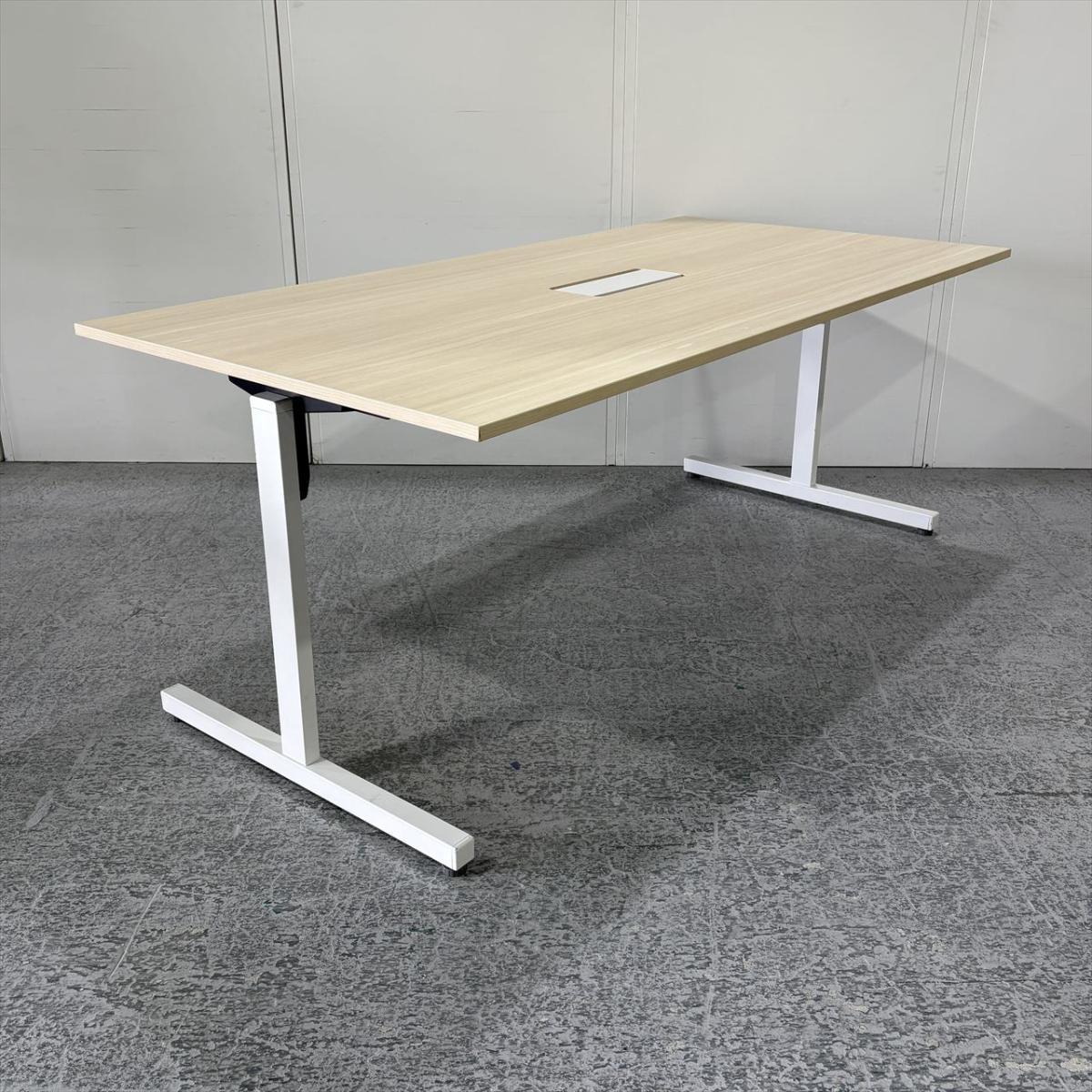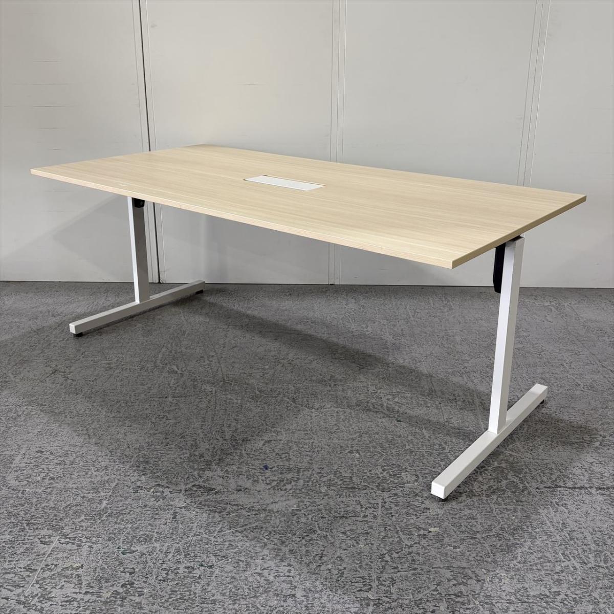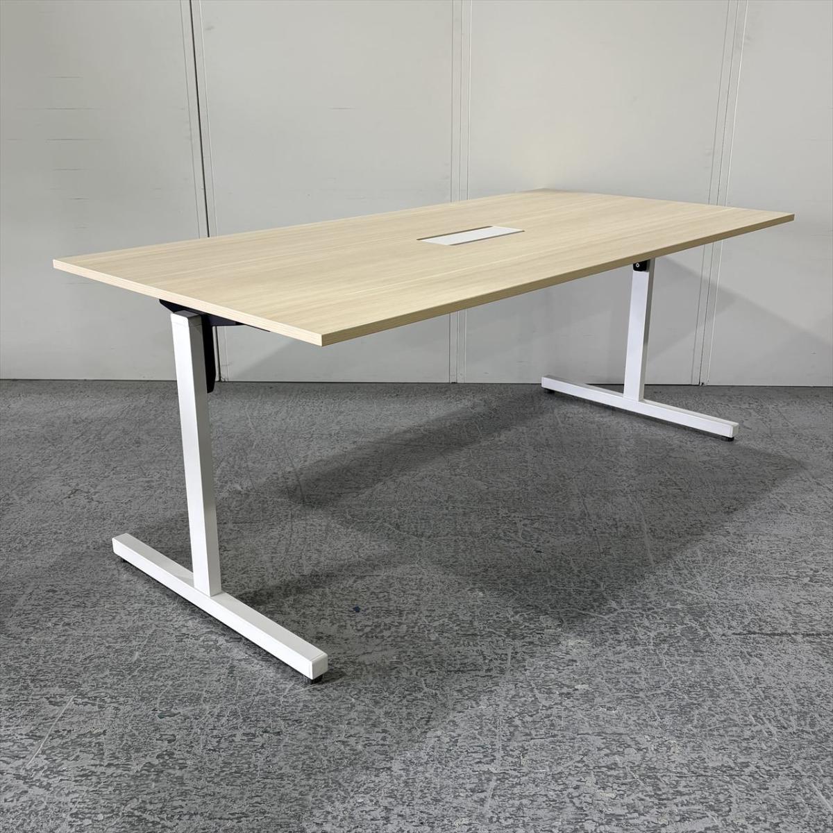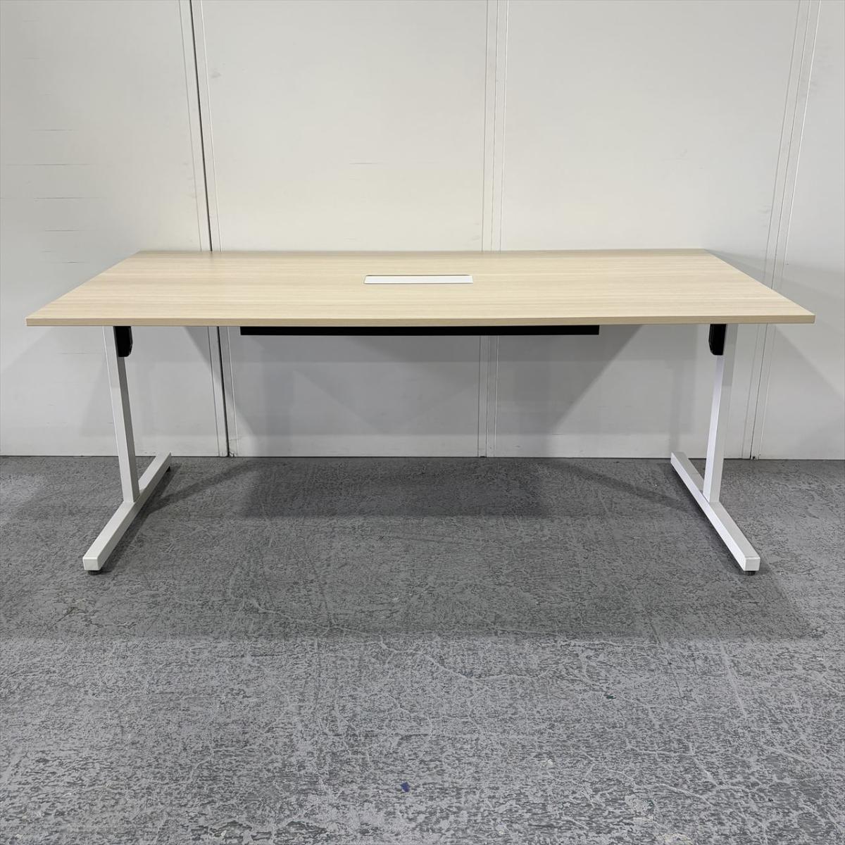 【4~6名様の打ち合わせ・会議にオススメ!】■ウチダ(UCHIDA)製 ミーティングテーブル W1800/D900/H720㎜ ■天板ナチュラル T字脚 ■配線口あり- なんば日本橋店