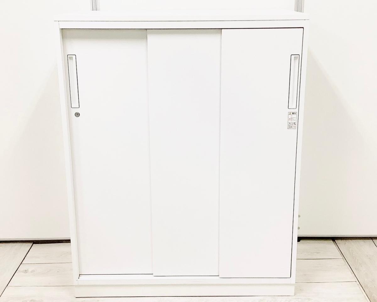 3枚引き戸書庫 コクヨ エディア 鍵付き(シリンダー錠) 天板付き 清潔感のあるホワイトキャビネット 導線を邪魔しないスライド式の扉
