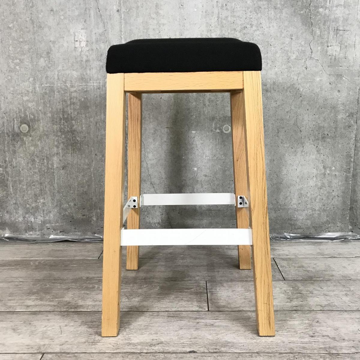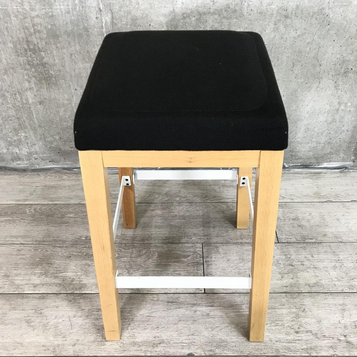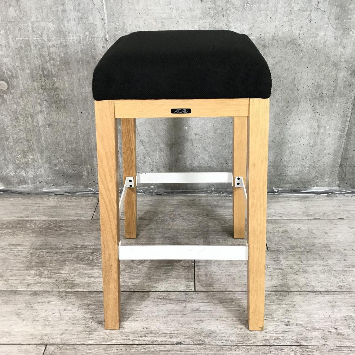 【ファブリック性の座面と木製の脚がオシャレな空間を演出!】■アダル(ADAL)製 スツール 足掛け付 ■座面:ブラック 4本脚:木製 【リフレッシュスペースやオープンスペースにおすすめ】- 在庫数