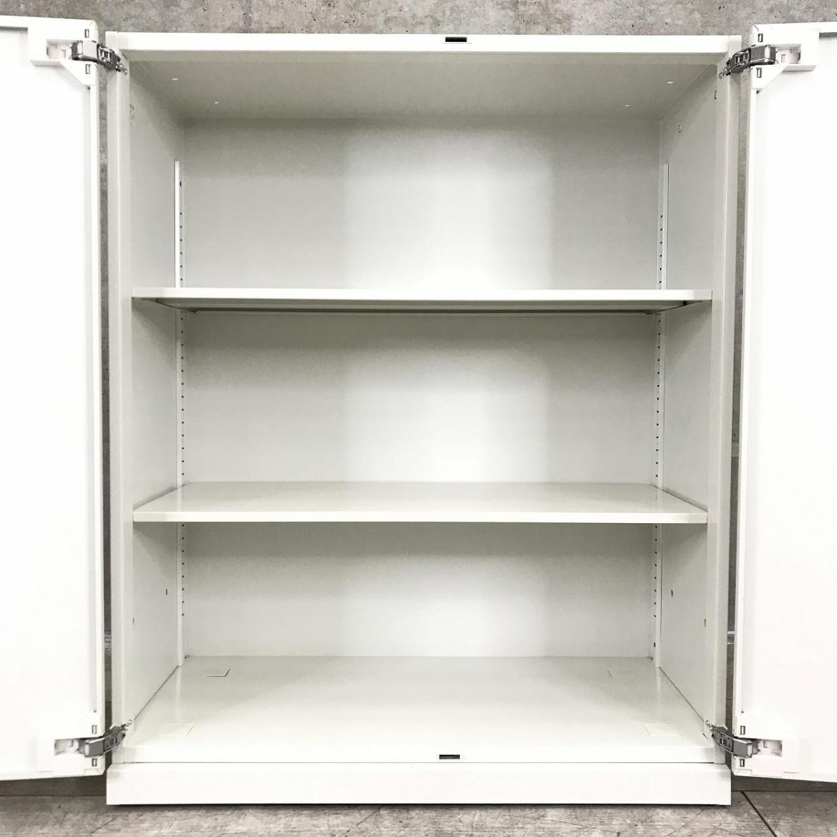 【収納物がひとめで分かる両開き戸タイプのホワイト書庫!】■プラス(PLUS)製 レガーティオ(REGATEO)シリーズ 両開き書庫 ローキャビネット ■ホワイト ■シリンダー錠- 高崎サテライト