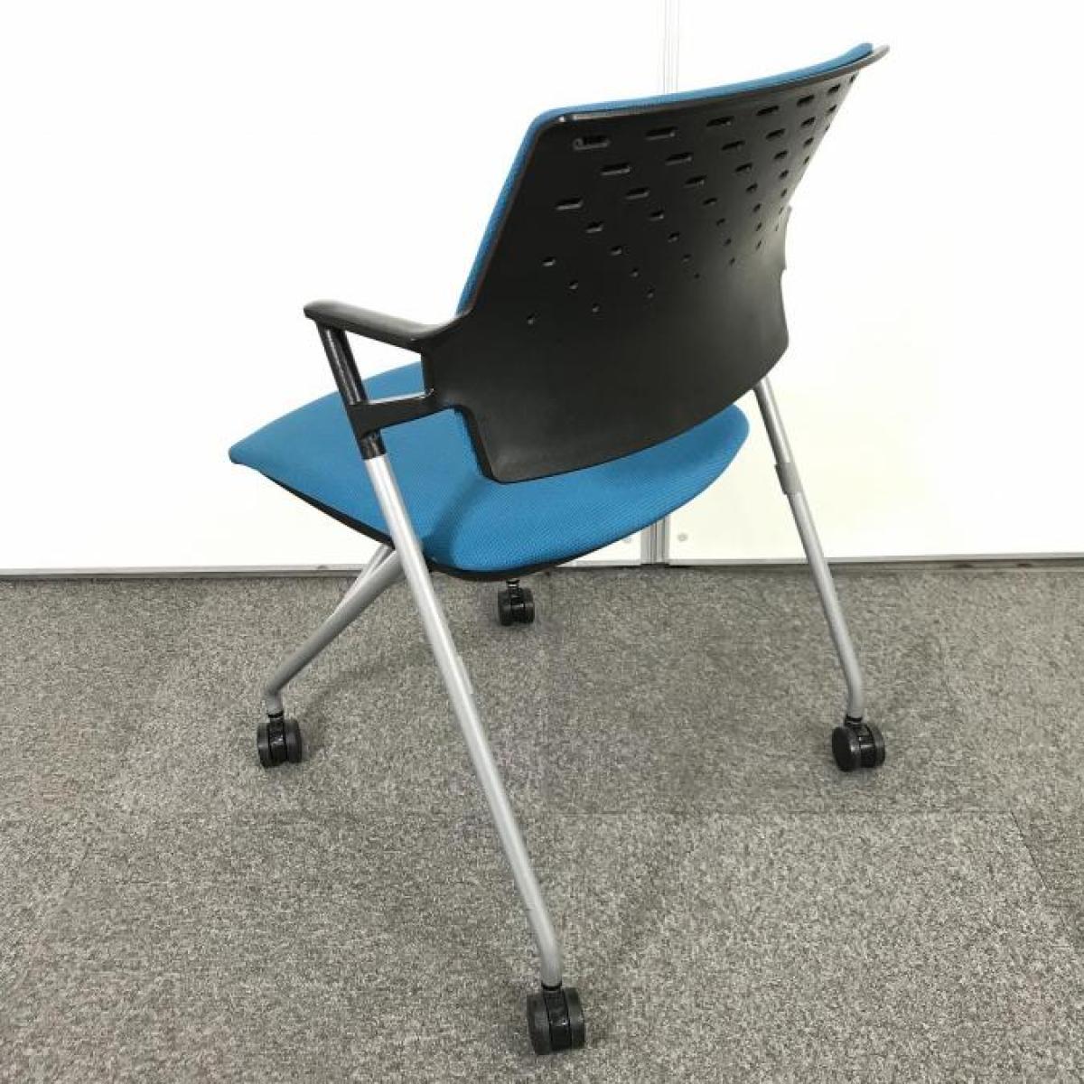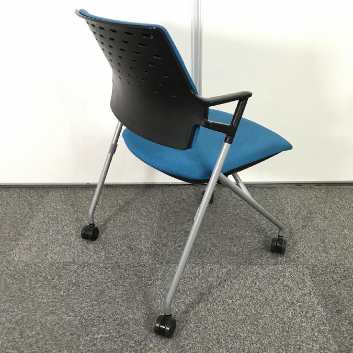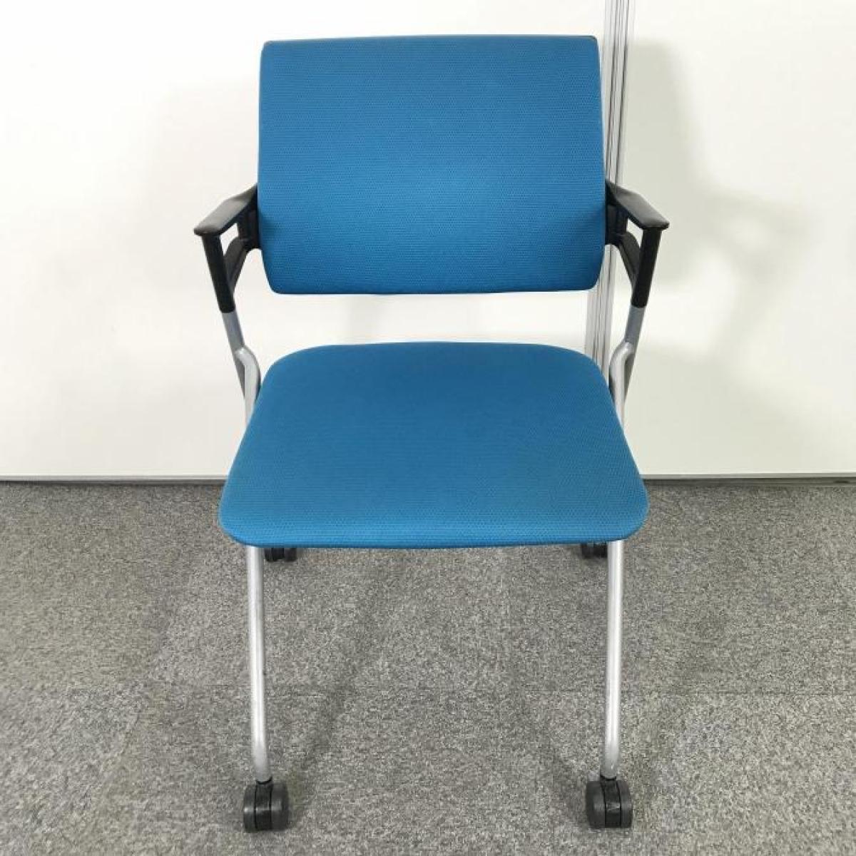【定価約6万円】【使わない時は重ねて収納!肘付きで長時間の会議も安心の座り心地】■コクヨ(KOKUYO)製 ピエガシリーズ(Piega) ネスティングチェア ミーティングチェア ■固定肘/キャスター付 ■背クッションタイプ ■ブルー ×ブラックシェル- なんば日本橋店
