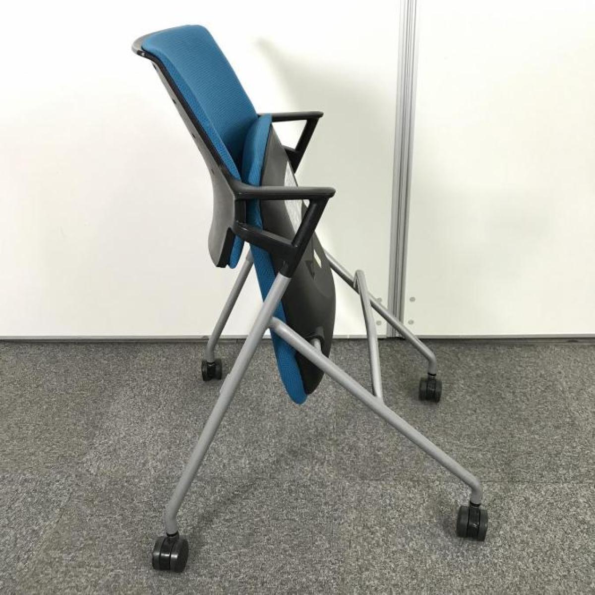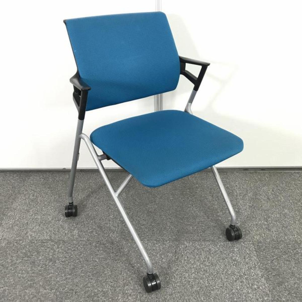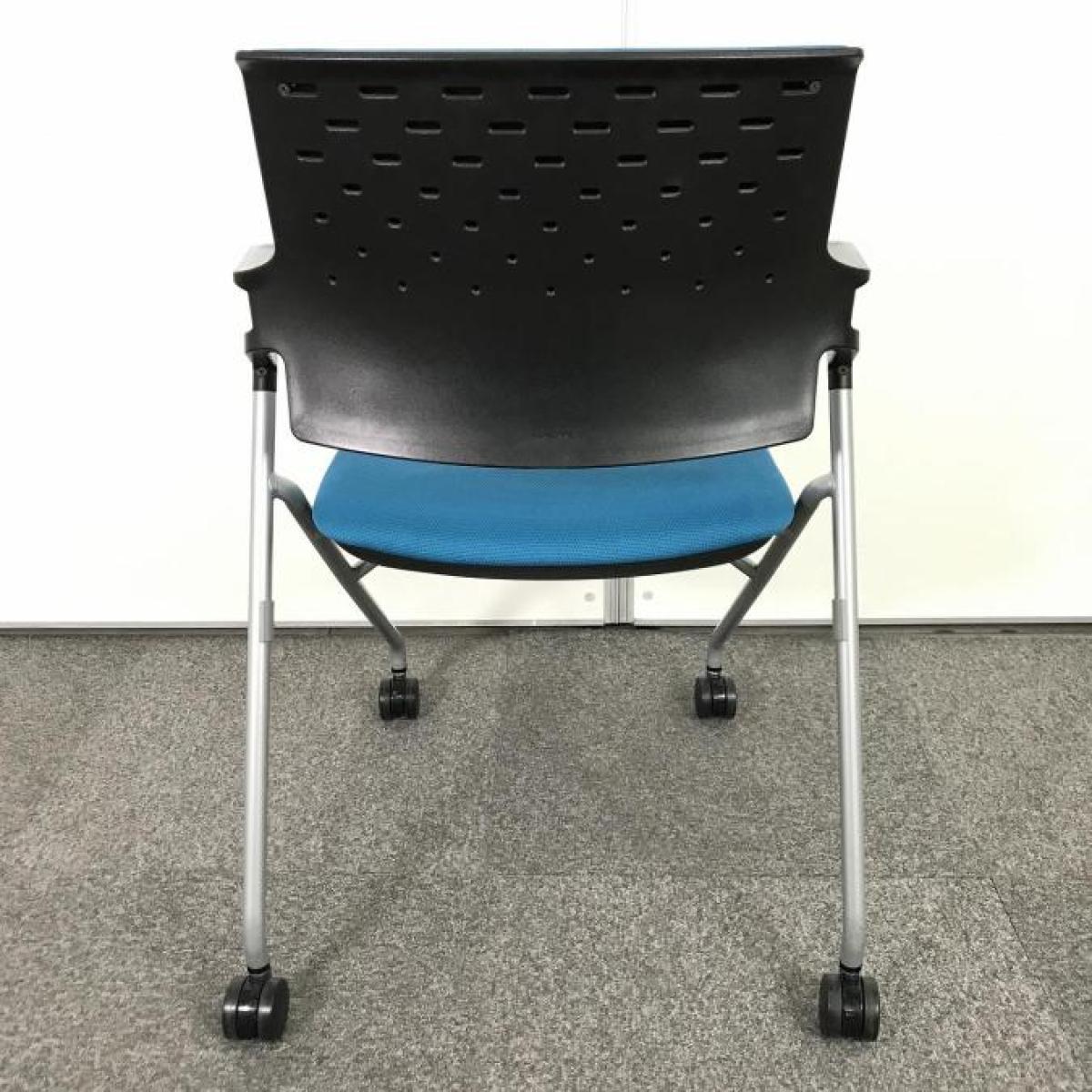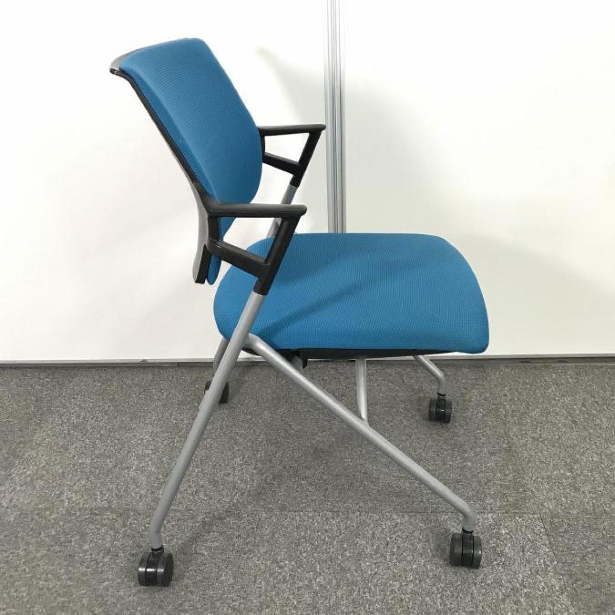 【定価約6万円】【使わない時は重ねて収納!肘付きで長時間の会議も安心の座り心地】■コクヨ(KOKUYO)製 ピエガシリーズ(Piega) ネスティングチェア ミーティングチェア ■固定肘/キャスター付 ■背クッションタイプ ■ブルー ×ブラックシェル- なんば日本橋店