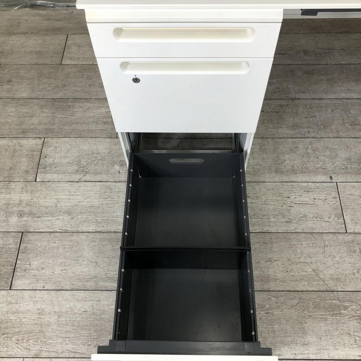 【定価約17万円】【広々としたワークスペースと収納力!上長デスクとしてもオススメ!】■クロガネ(KUROGANE)製 両袖デスク W1600×D700㎜ ■ホワイト ■シリンダー錠【AD】- 在庫数