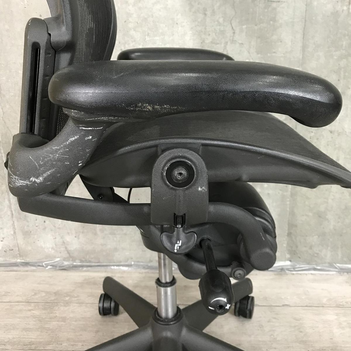 【スタイリッシュなデザインに快適な座り心地!】■ハーマンミラー アーロンチェア Bサイズ 固定肘 ランバーサポート無 ※キズあり・劣化ありのためお安く!【A01029474】