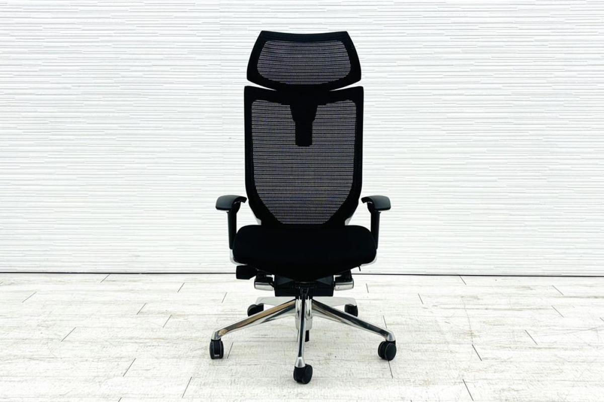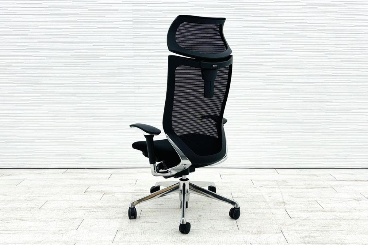 【オフィスの執務室、会議室におすすめ!】■オカムラ(okamura)製 バロン(Baron)チェア 肘付き ハイバック ■背・座面メッシュ ■可動肘 ■ヘッドレスト付き ■ブラック【硬めの座面が大人気!国産メッシュチェアの代表格!】
