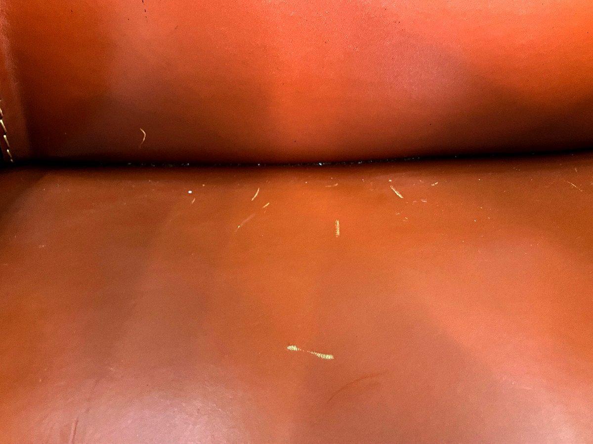 - あり黄ばみ・変色が広い範囲にうっすらある、または濃い黄ばみ・変色が一部ある。(例、座面・背もたれ、脚部等にある。)
