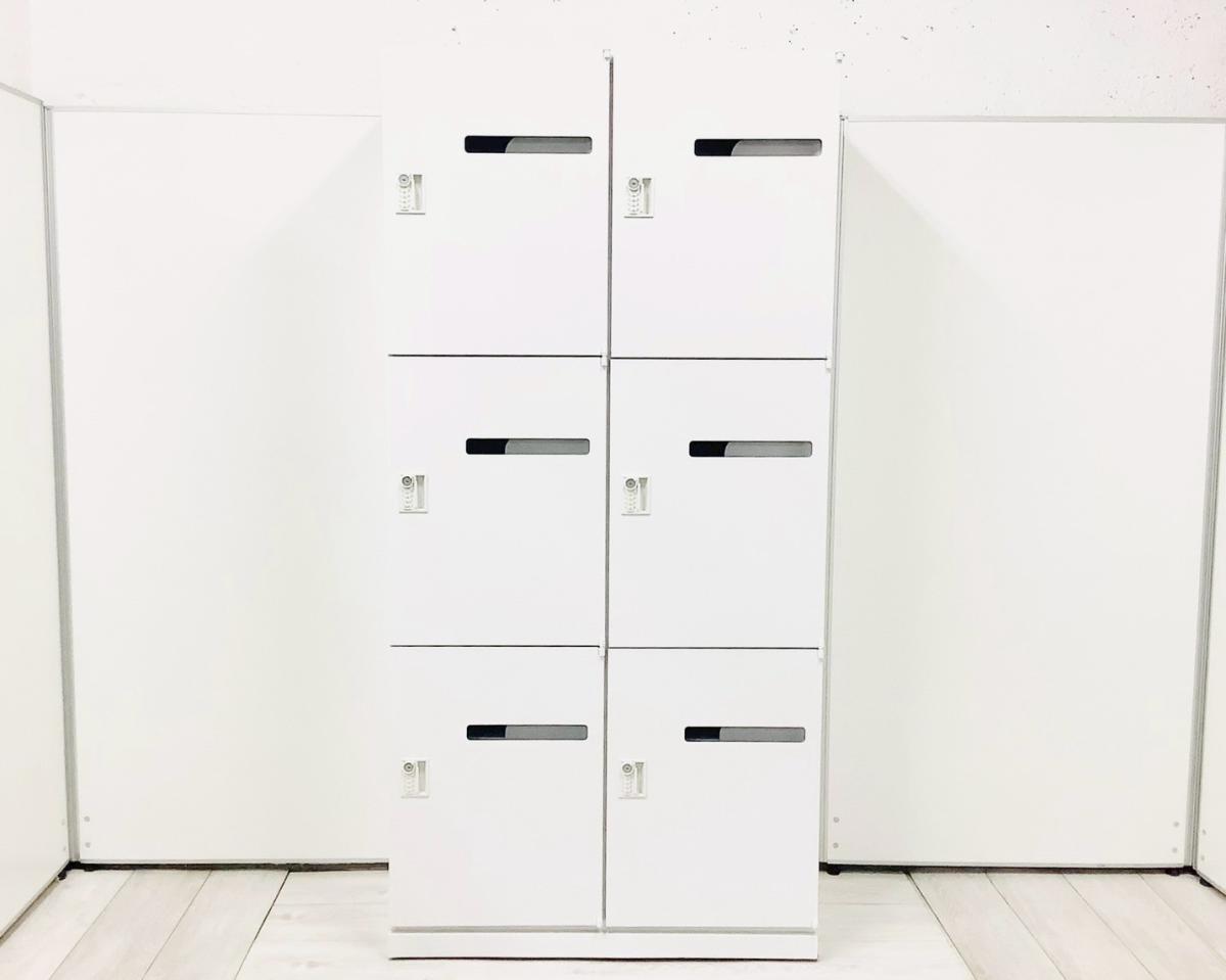 【訳アリ特価品】【フリーアドレスの相棒!ダイヤル錠タイプの6人用メールロッカー!■ウチダ(UCHIDA) HSシリーズ 6人用パーソナルロッカー 投函口あり ■ダイヤル錠 ■ホワイト〈岐阜・愛知・三重・静岡・福井〉
