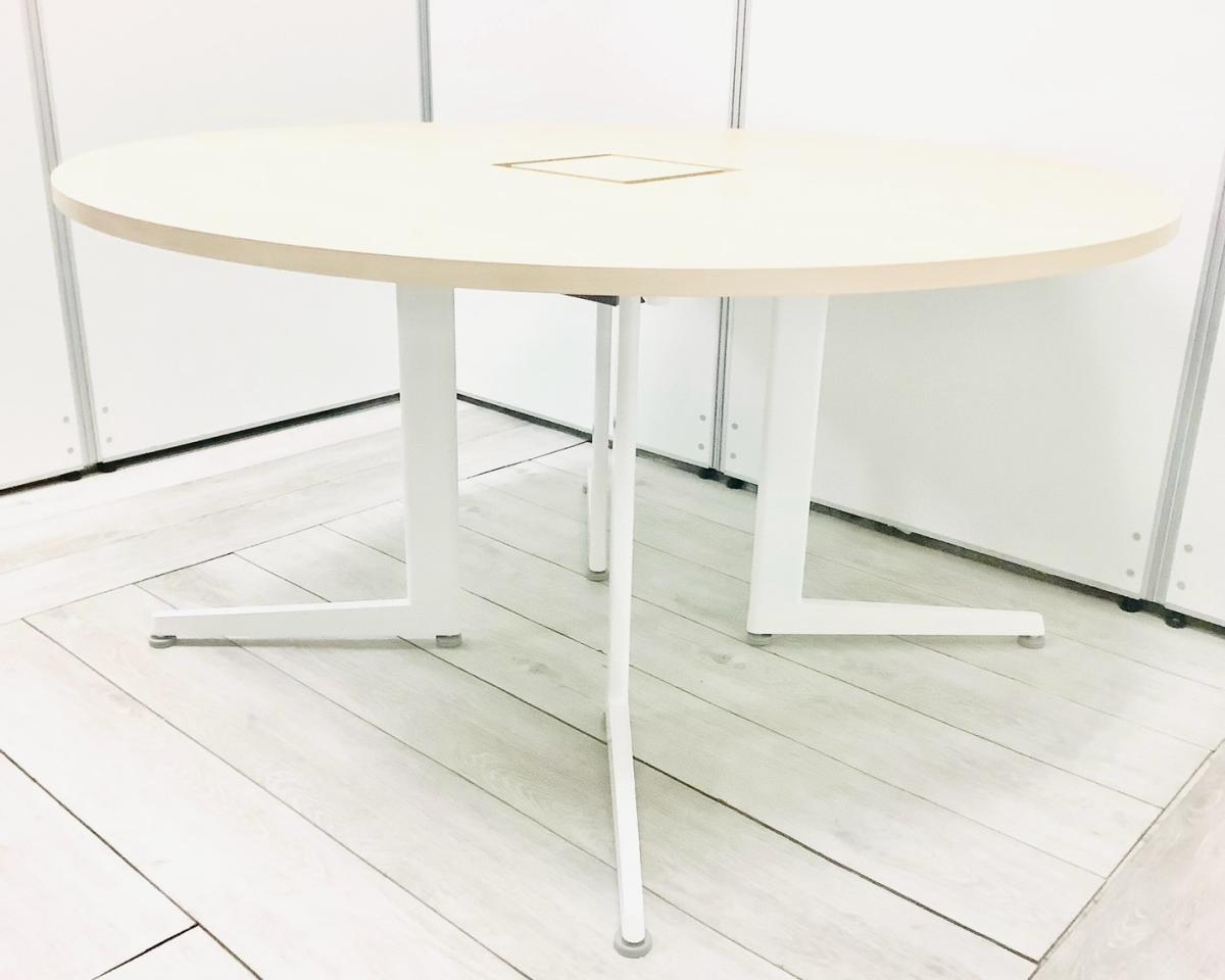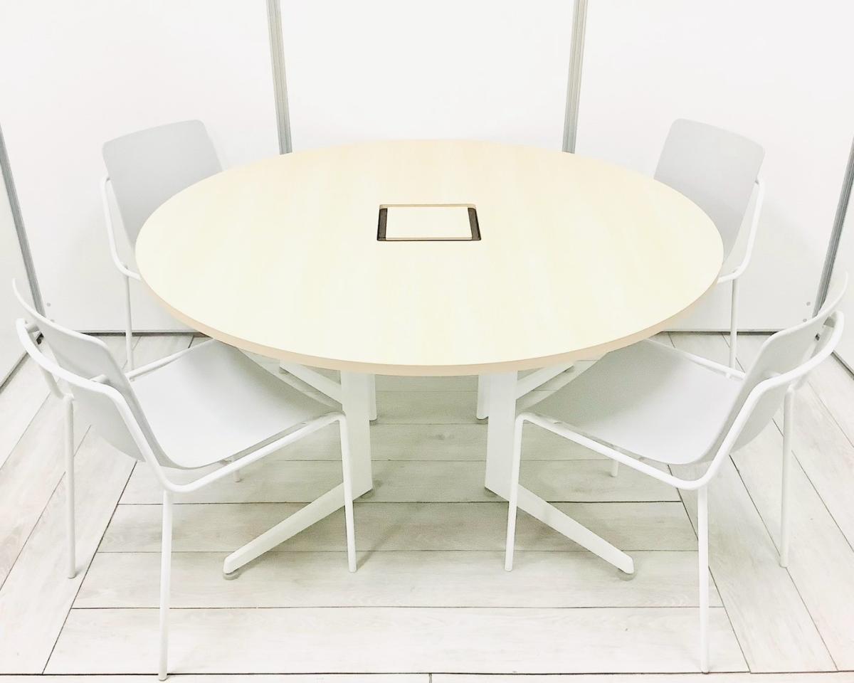 【コミュニケーションを円滑にするツール!囲んで話し合えば、クリエイティブな意見が飛び出すかも!】■オカムラ(okamura) アプションフリー(Aption Free) 丸テーブル ミーティングテーブル【ナチュラル色のフタ】 ■天板:木目ナチュラル【2505】弊社使用欄【A01014744】