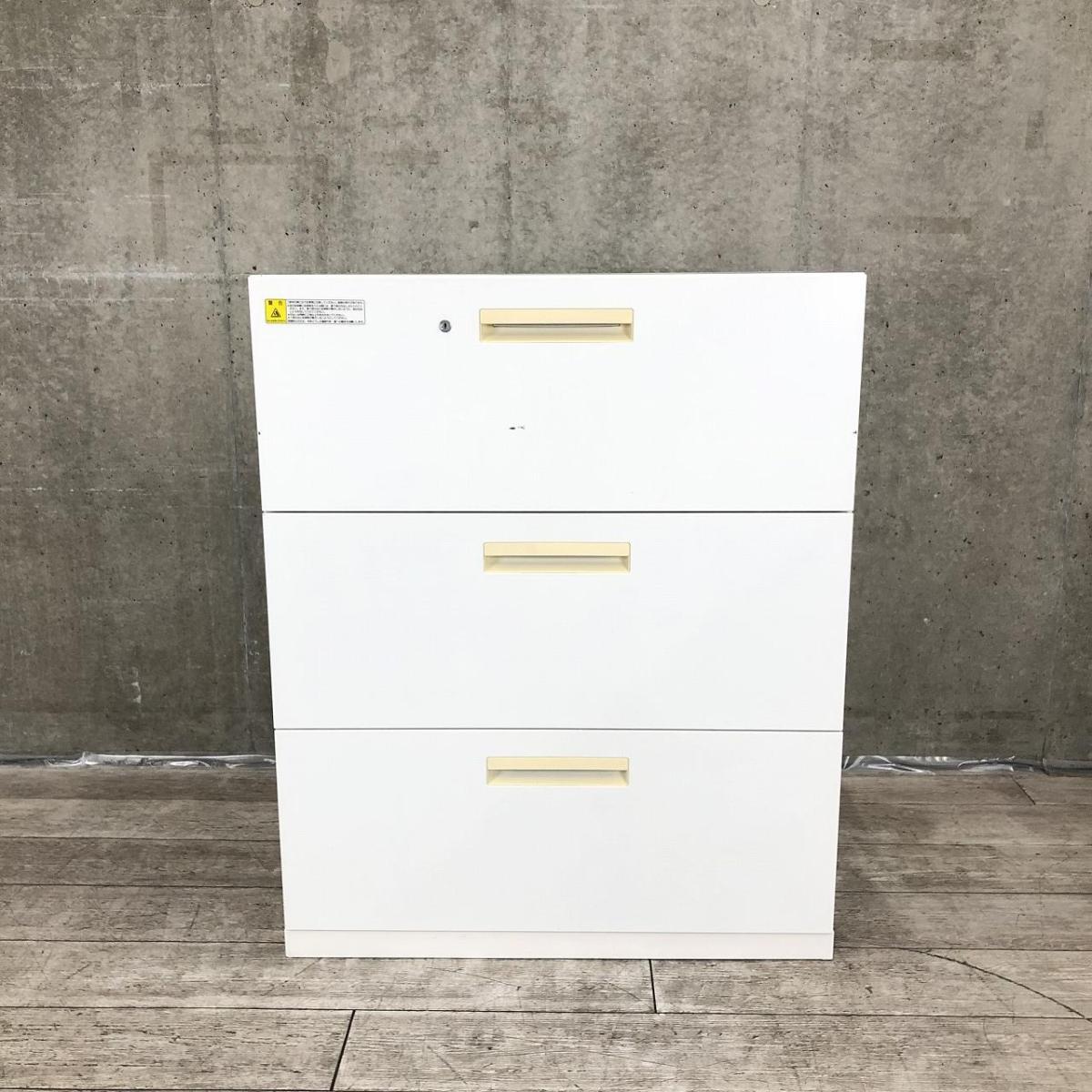【日焼けの為特価!】【機能に問題ありません!】【書類を一気に収納!大型取っ手で開け閉めしやすい!】■ウチダ(UCHIDA)製 HSシリーズ 3段ラテラル書庫 ローキャビネット ■ホワイト ■ベース付き ■シリンダー錠 ※日焼けあり【2510】弊社使用欄【A01040376】- 埼玉本店
