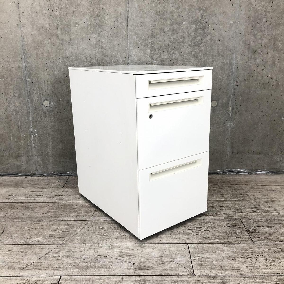 【フリアドデスクや平机の収納力アップに最適!】■オカムラ(okamura)製 アドバンス(ADVANCE)シリーズ 3段ワゴン フリアド用 W390×D575×H650㎜ ■シリンダー錠 ■ホワイト ※日焼け有【IB】