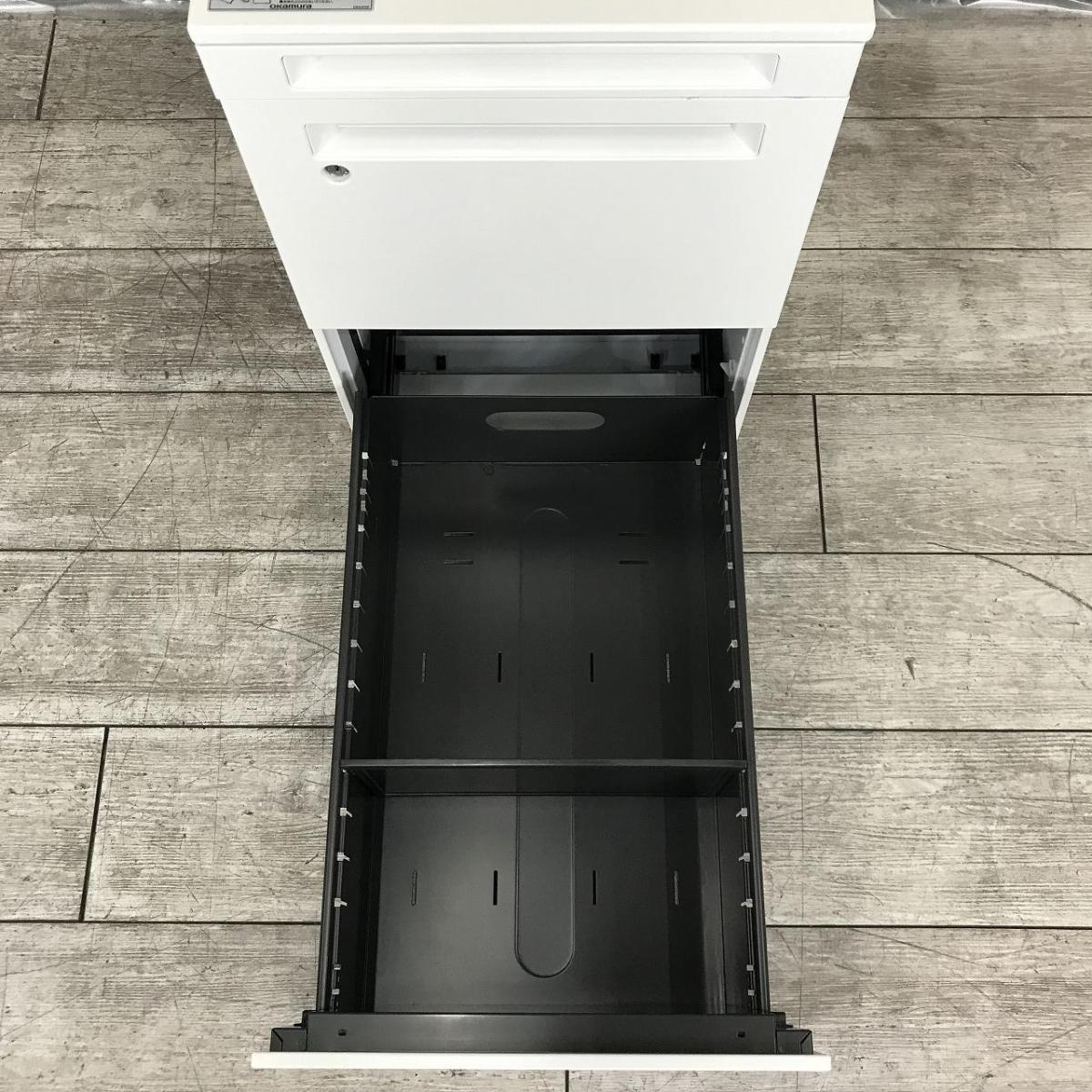 ★【取っ手日焼け】オカムラ製 アドバンス ホワイト フリアド用 W390xD575xH650サイズ シリンダー フリアドデスクや平机の収納力アップに最適! 3段ワゴン!!