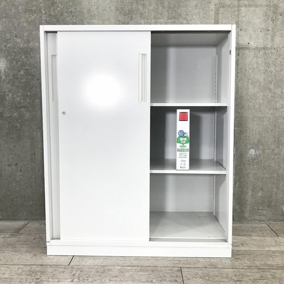 【在庫入替セール品!】【スライド引き戸だから開閉スペースに困りません!人気の引き違い書庫!】/オススメ(おすすめ) /人気商品【弊社使用欄:A01001006】■引違い書庫 2枚戸タイプ ローキャビネット シリンダー錠 ホワイト/内田洋行/HS- 池袋店