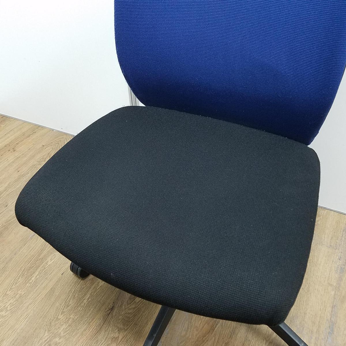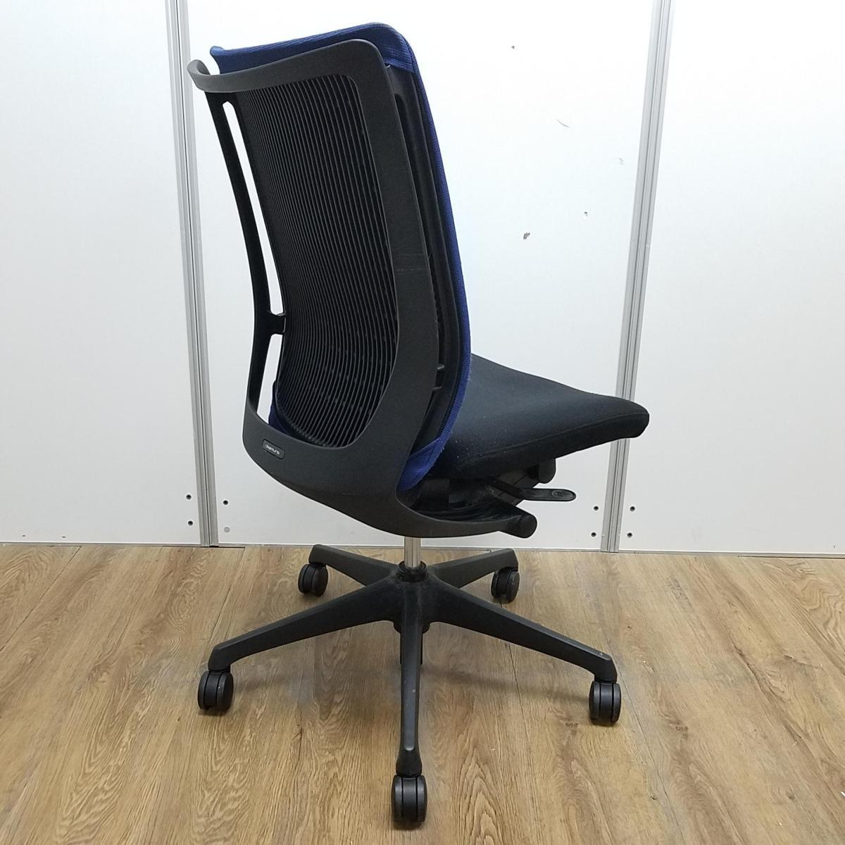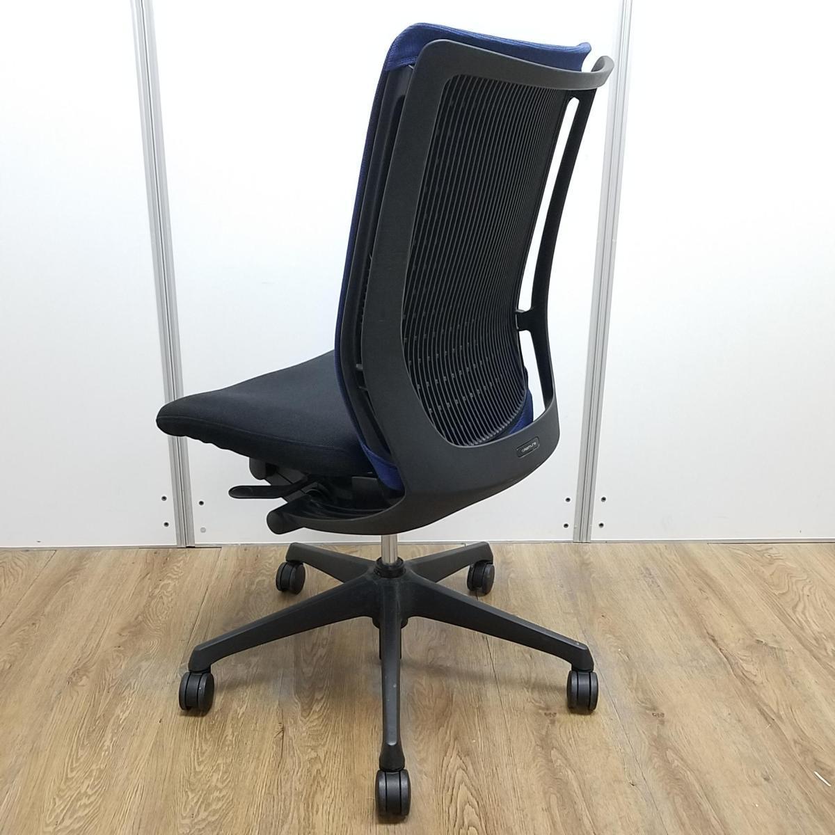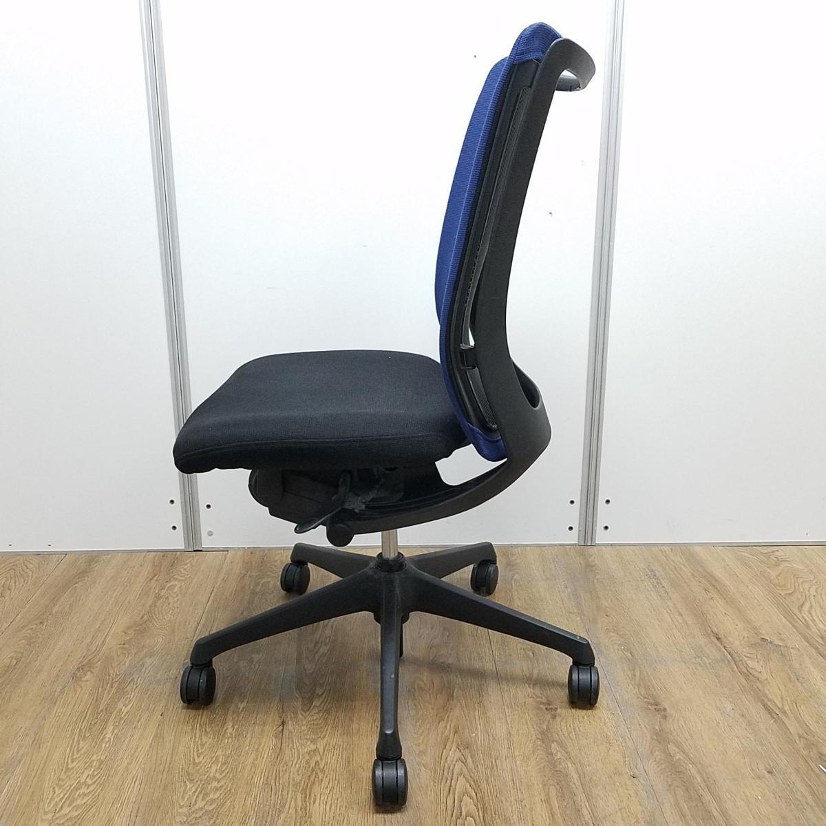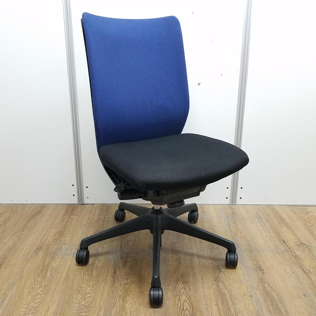 オカムラ製 ヴィスコンテシリーズ ミディアムブルーxブラック ツートンカラー クッションタイプ 高いデザイン性と快適なクッション性が人気のOAチェア! 肘無しハイバックチェア!!- 京都東寺店