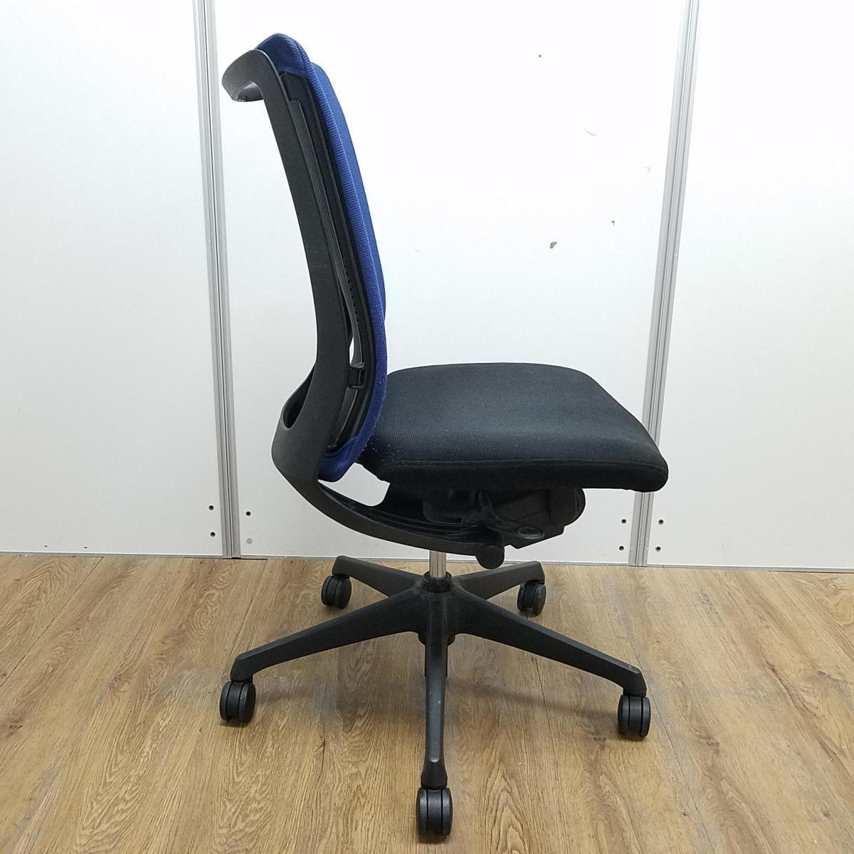 【T11】【T9】【座面スポンジ劣化】オカムラ製 ヴィスコンテシリーズ ミディアムブルー クッションタイプ 高いデザイン性と快適なクッション性が人気のOAチェア! 肘無しハイバックチェア!!