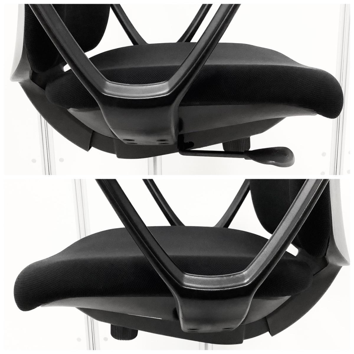 なので、「どれでも同じでしょう」と過小評価されがちですが、さすがのオカムラ製!座面の無段階上下調整やリクライニングの反発の強さ調整などに加え、リクライニンする際に足首の位置を支点にして動く、アンクルチルトリクライニングという特殊な機構が搭載されています。「人間が寄りかかる動き」にぴったりとフィットし、快適さをもたらしてくれます。