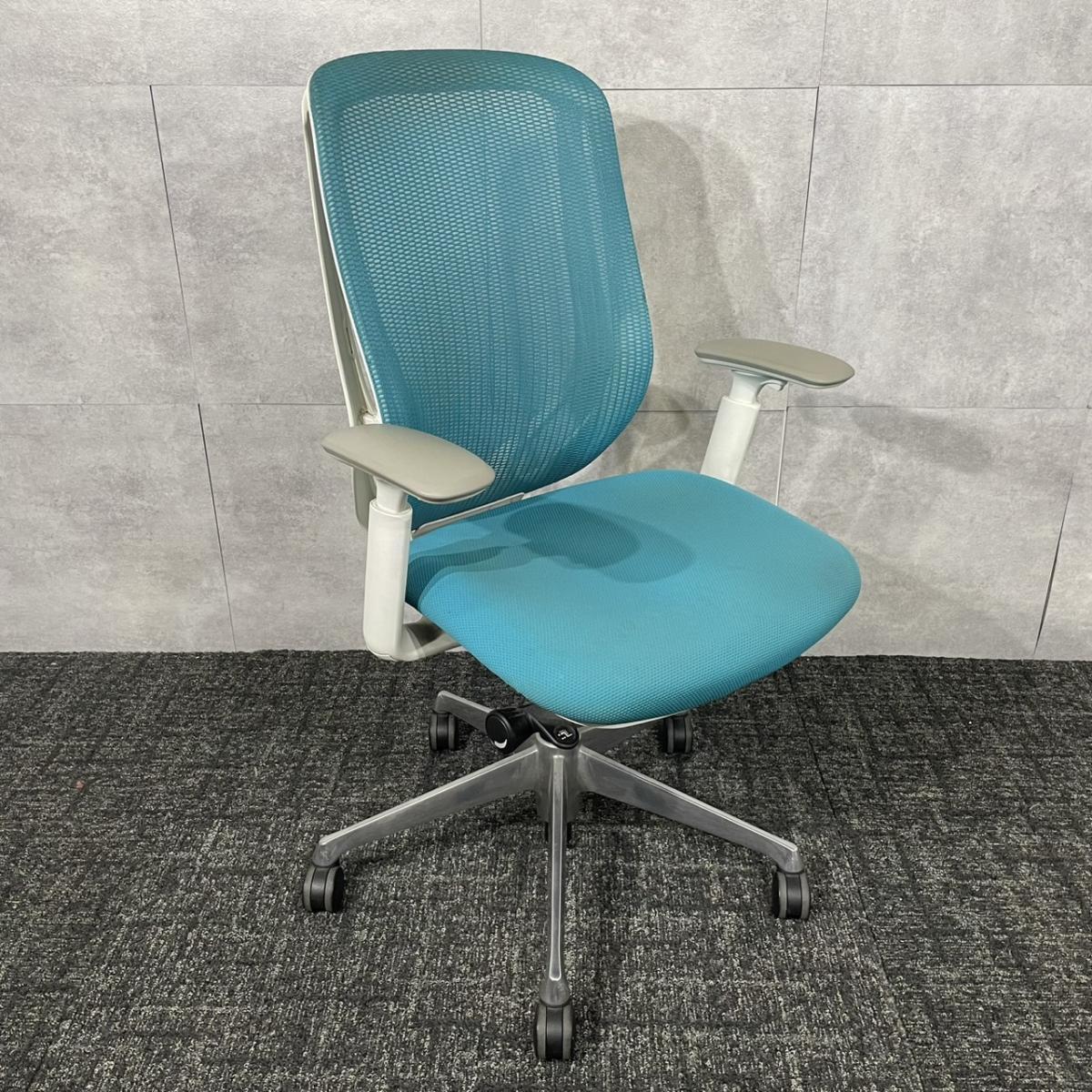 《現物写真だから安心!》オカムラ製の人気オフィスチェア【シルフィーメッシュ/可動肘/ヘッドレスト付き/ブルーグリーン】が先着1名様ご案内可能です!