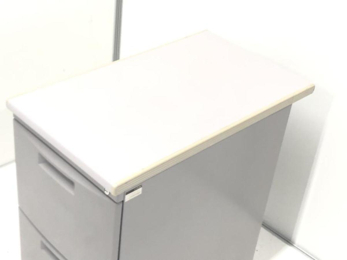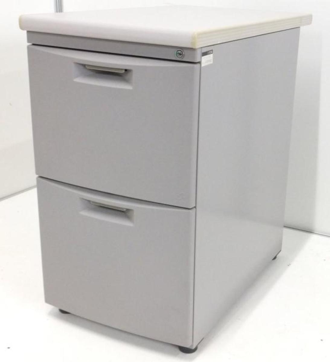 ★【日焼け・スレあり】イトーキ製 CZN グレー W400×D700xH700サイズ シリンダー デスク横に置いて収納と作業スペースを同時に確保! ファイル収納に強い2段タイプ! 2段脇机!!