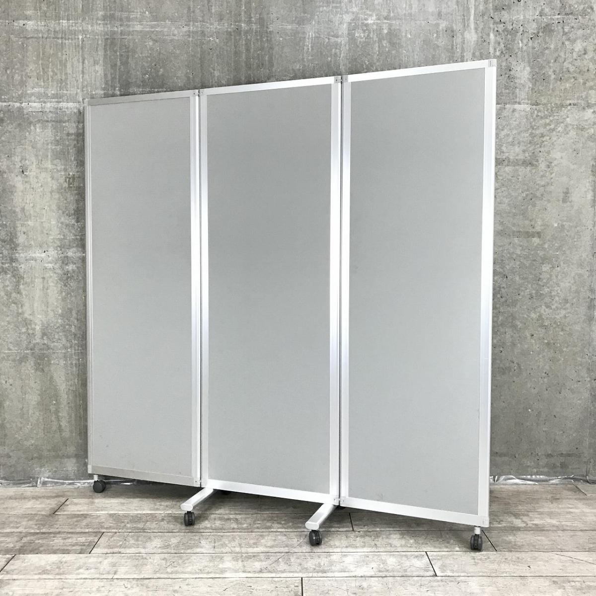 【キャスター付で便利に使える!希少な3つ折りパーテーションが入荷!】【折り畳み式間仕切り!】■イトーキ(ITOKI)製 3つ折りパーティション W1800×H1800㎜ ■グレー ■キャスター付- 在庫数