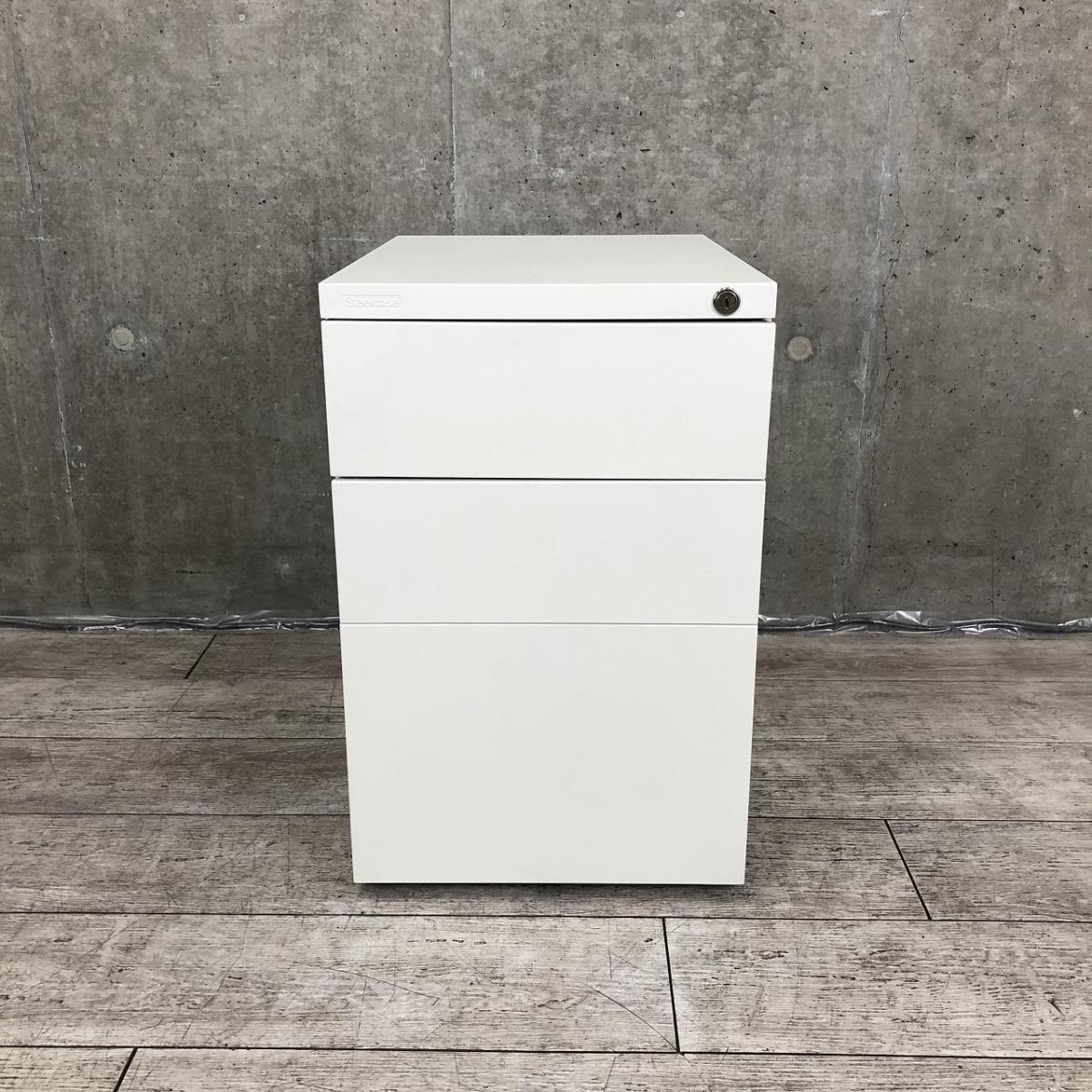 【関東倉庫在庫品】【書類やファイルをたっぷり収納可能!上段は文房具を!】■スチールケース製 ワゴン3段 ■ホワイト【弊社使用欄:A01014569】【ECBMC】- 在庫数