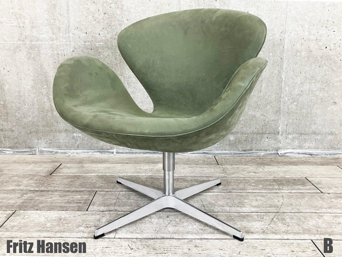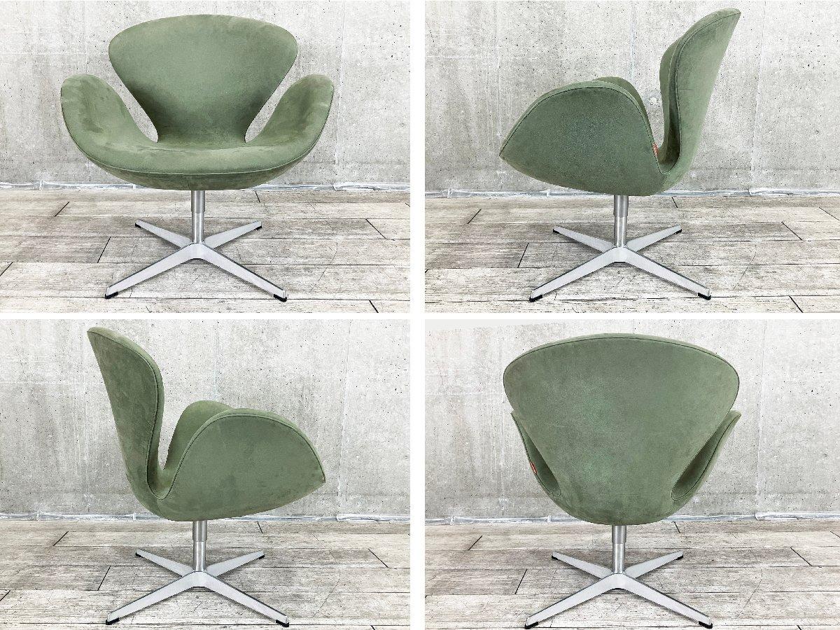 B)Fritz Hansen フリッツハンセン アルネ・ヤコブセン スワンチェア モスグリーン系 北欧- デザイナーズ家具センター