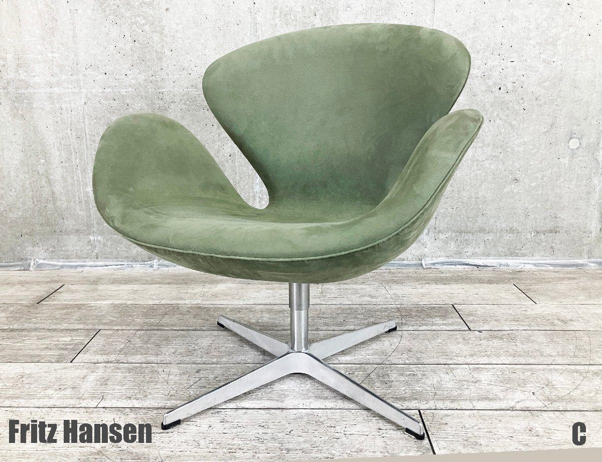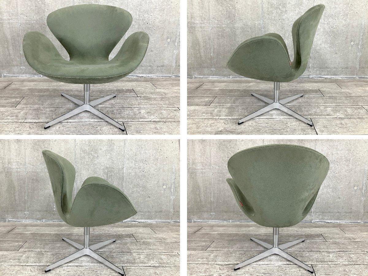C)Fritz Hansen フリッツハンセン アルネ・ヤコブセン スワンチェア モスグリーン系 北欧- デザイナーズ家具センター