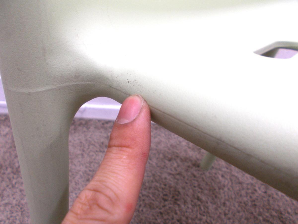 - 目立つ箇所あり傷・破れ・ほつれ・へたり・しわが多数または深い傷・破れ・ほつれ・へたり・しわが一部ある。※座面・背もたれ、シェル、脚部等にある。