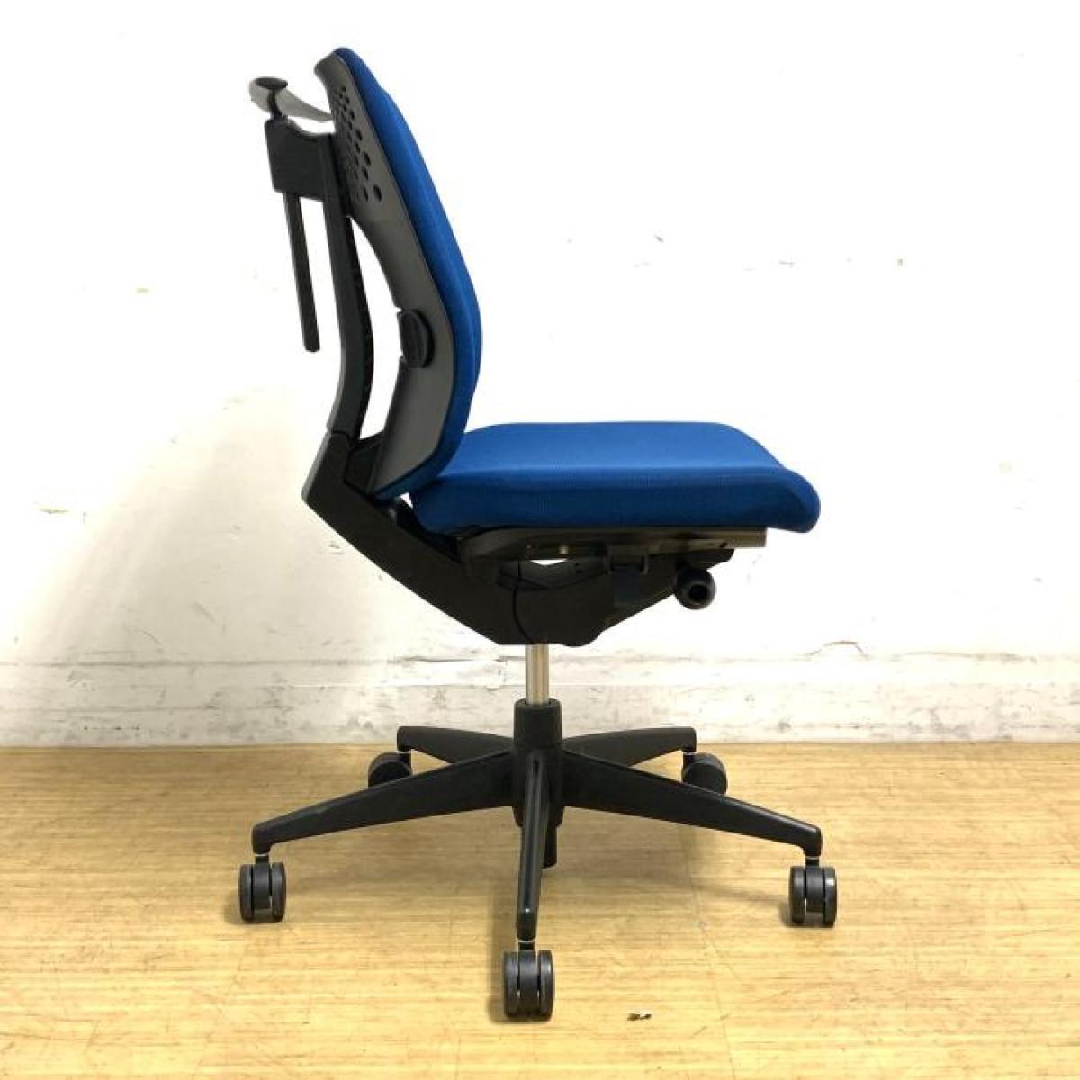 コクヨ ウィザード2 ローバック プルシアンブルー×ブラックフレーム 肘無しモデル コートハンガー付き 定番の使いやすいチェア オフィスバスターズ梅田本店