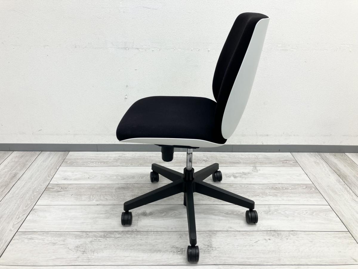 シチュエーションを選ばず使えるクセのない座り心地が魅力の1脚です。肘無しタイプのため、デスク下にスッと収まりやすく、省スペースでレイアウトを組みたいオフィスにも最適。ブラック×ホワイトのツートンフレームが軽やかな印象を与え、モダンなワークスペースに自然と溶け込みます。シンプルだからこそ長く使いやすい、安心感のあるチェアです。