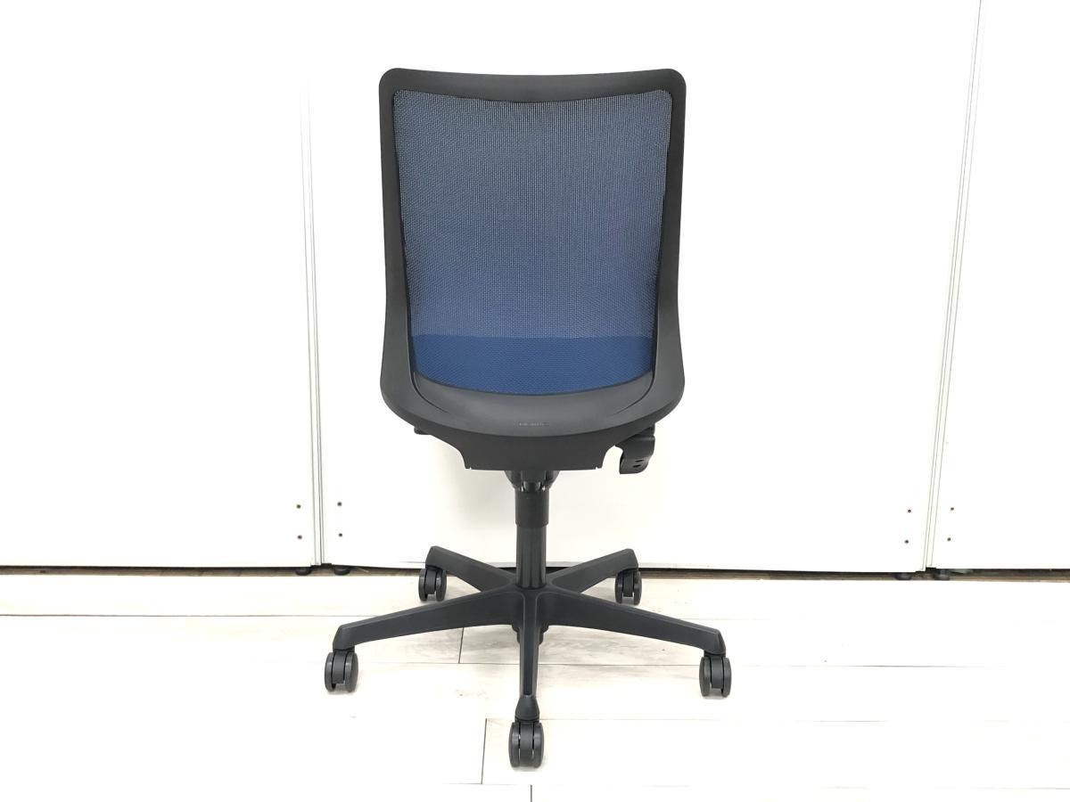オカムラ フルーエントチェア 肘無しローバックモデル メッシュタイプ ミディアムブルー×ブラックフレーム