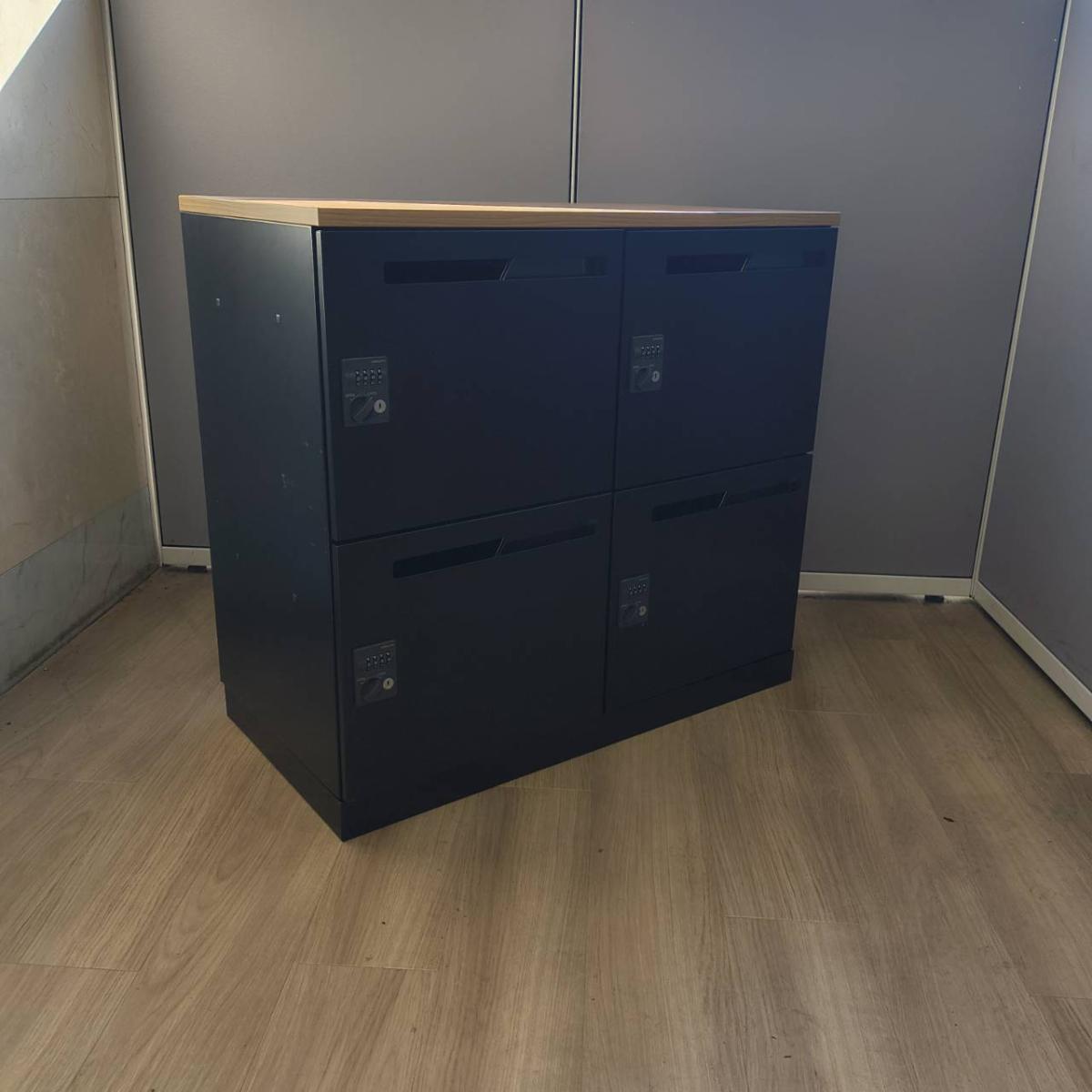 【希少在庫!】【起業に最適なシックな色合い!】【4台限定】【フリーアドレス化の相棒!個人の荷物を収納可能なダイヤル錠式の4人用ロッカーが入荷!】■コクヨ(KOKUYO)製 イノン(iNON)シリーズ 4人用パーソナルロッカー ■投函口付 ■ダイヤル錠 ■ブラック/天板:木目ナチュラル【2510】弊社使用欄【A01042674】- 埼玉本店