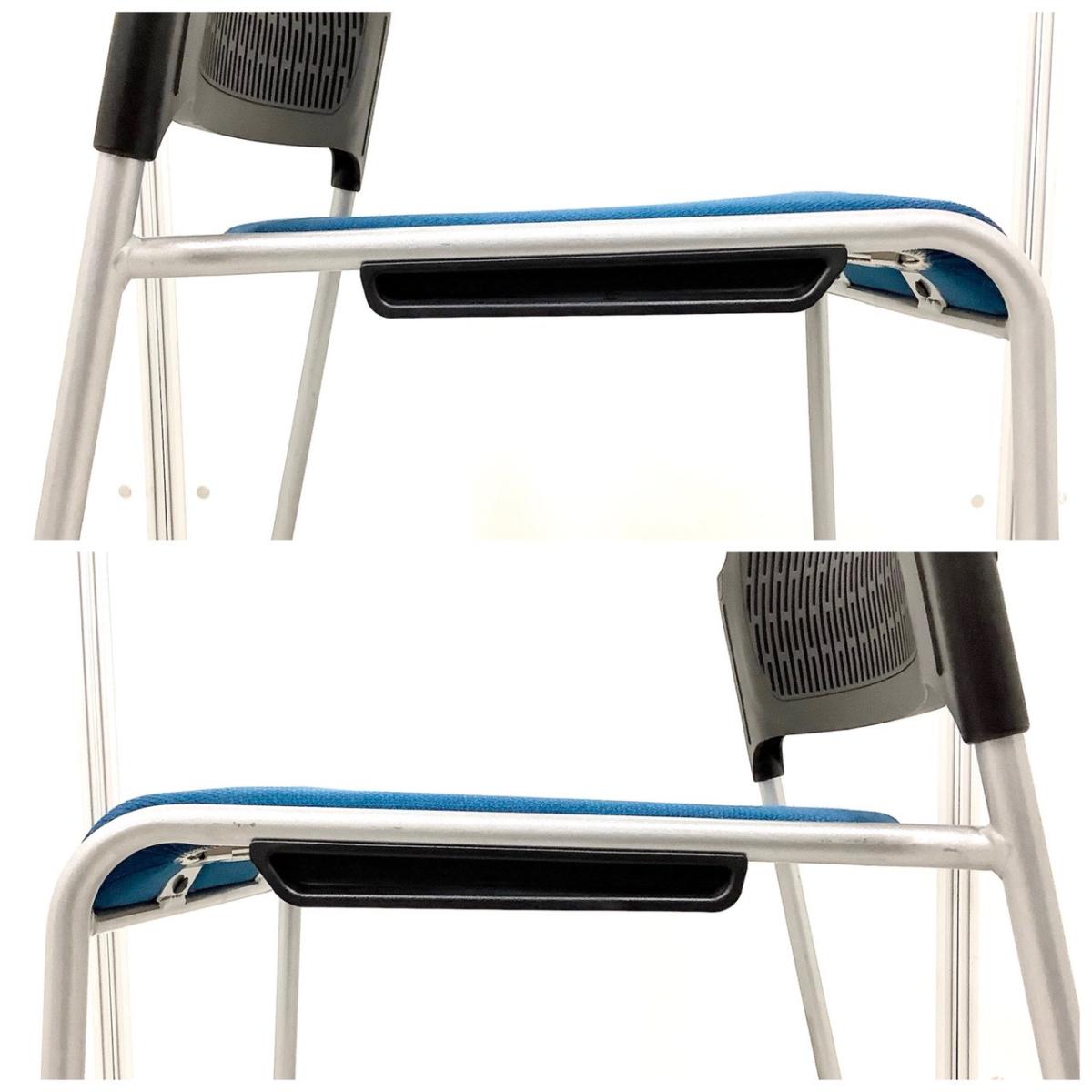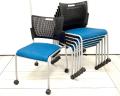 【重ねて収納可能!さわやかなカラーとシンプルデザイン!】■オカムラ製 レーテ スタッキングチェア ミーティングチェア ■キャスター付き ■座面ブルー×背面ホワイト【2412】弊社使用欄【A00990049】